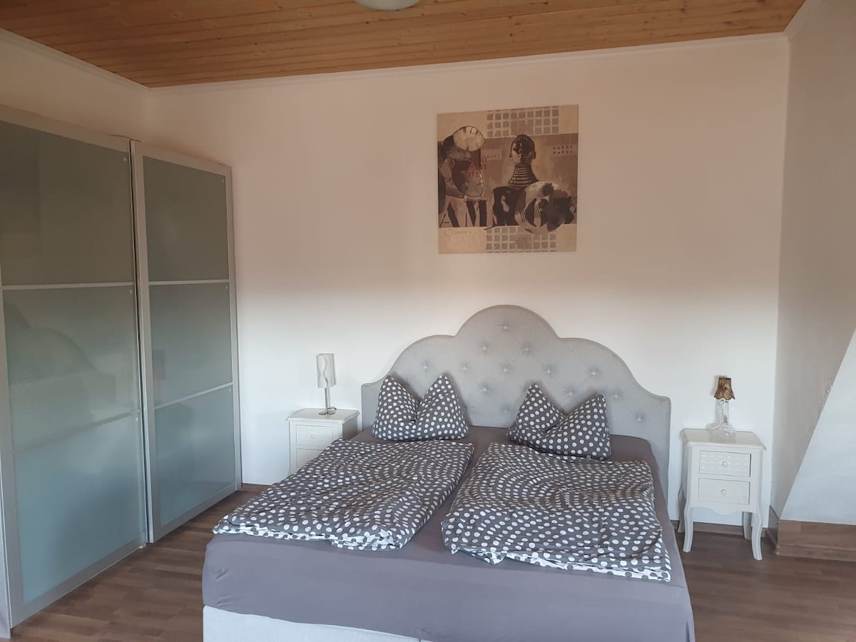 Die neu renovierte, ca. 75 qm große Fewo liegt sehr ruhig in Mistelgau. Die Einbauküche verfügt über eine Spülmaschine, Herd, Wasserkocher, Toaster, Mikrowelle, Kühlschrank, Kaffee- und Nespressomaschine. Das Bad hat eine Dusche / WC. Das großzügige Schlafzimmer verfügt über ein Doppelbett und einen Kicker. Ein kleines Kinderzimmer bietet eine Schlafmöglichkeit mit Bett. Zudem steht eine Ausziehcouch zur Verfügung. Reisebett vorhanden. Haustiere sind nach Absprache gegen Gebühr willkommen.