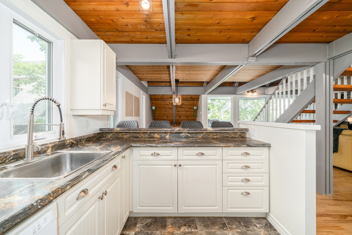 Benvenuti nella nostra Sky House ✧ By Activ Chalets® Scopri il fascino di una casa sull'albero con un balcone privato che si affaccia sulla foresta: il tuo rifugio tranquillo a pochi passi da Mont-Ste-Anne! ➳ 2 posti auto Ponte ➳ rialzato che sembra una casa sull'albero! ➳ Barbecue disponibile tutto l'anno ➳ Vista sul San Lorenzo ➳ Piscina coperta, piscina all'aperto, sauna e palestra nel complesso (accesso gratuito) ➳ Box, cancelli di sicurezza e attrezzature per bambini A ➳ 2 minuti dal Mont-Sainte-Anne A ➳ 30 minuti dalla Vecchia Québec e da Charlevoix