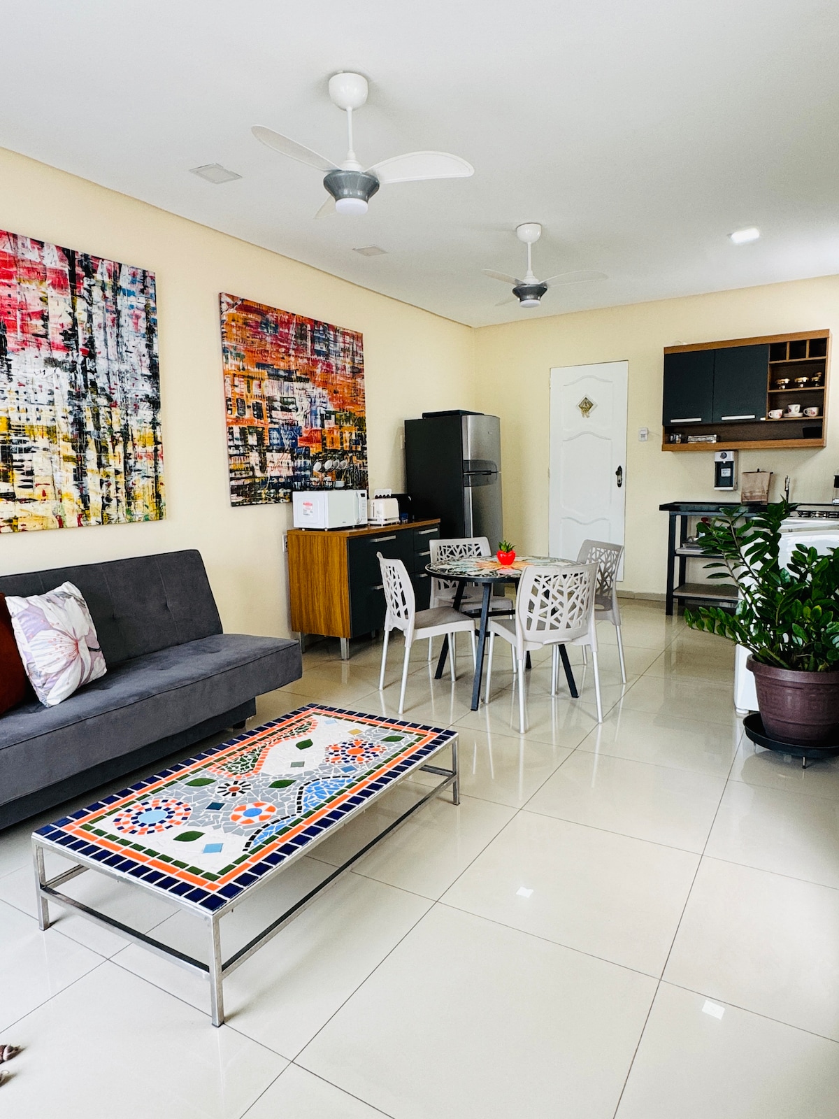 A haven of comfort and culture in the heart of Belém Fully air-conditioned, charming, and with original décor inspired by the Amazon, Casa Felicidade is the ideal place for those seeking tranquility, style, and an authentic local experience. 🏡 The House: • 2 comfortable bedrooms: double + single • 2 full bathrooms • Fully equipped kitchen with modern appliances • Spacious, bright, and air-conditioned living room with 58" TV • Mezzanine with sofa bed, 42" TV, and hammock for reading or relaxing.