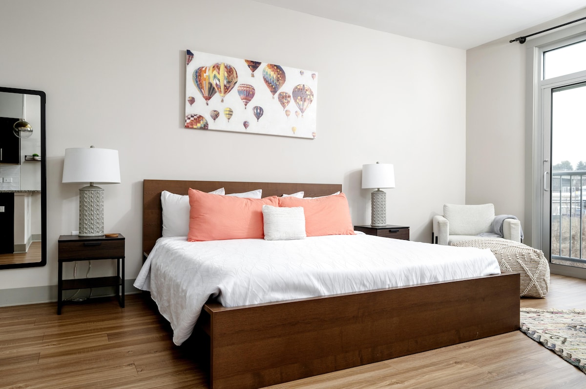 Monolocale bello e accogliente, pieno di luce naturale, con letto matrimoniale, cucina completa e bagno completo. Goditi la privacy del tuo ingresso indipendente, del portico e del self check-in. Siamo vicini a tutto, quindi fai un'escursione sulle pittoresche montagne Blue Ridge, in mountain bike sui sentieri di Bent Creek o rilassati sul fiume French Broad prima di raggiungere il vivace centro, la stravagante West Asheville e i birrifici e le gallerie del River Arts District. Molto vicino agli Asheville Outlets e con facile accesso all'aeroporto.