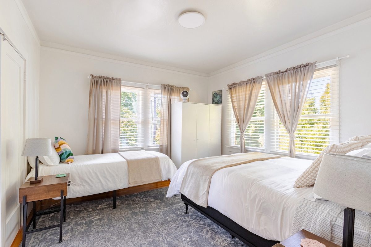 Enjoy a fully furnished, private one-bedroom apartment, set on a quiet, tree-lined street in one of Berkeley’s safest and charming family neighborhoods. Perfect for visiting family or extended stays. There are 3 beds in the apartment; a Queen and a Twin XL bed in the bedroom, plus a full-size sofa bed in the living room. One-block walk to beautiful Strawberry Creek Park, UC Berkeley, North Berkeley BART, and University Avenue bus lines. In-unit washer & dryer Berkeley Zoning: ZCSTR2020-078