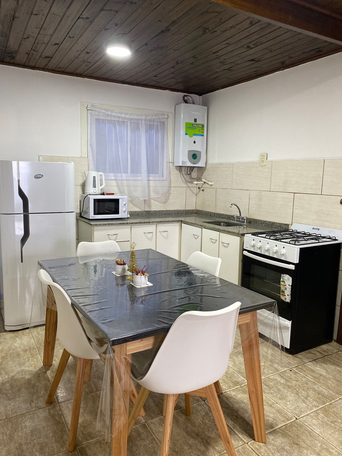 Relájate con toda la familia en este alojamiento cocina equipada, baño completo, Wifi, tv 50, aire acondicionado,somier de 2 p,camas cucheta de 1p. Ropa blanca.Entrada para vehículo,patio,parrilla y pileta. Galeria techada sillas y mesa de jardín.
