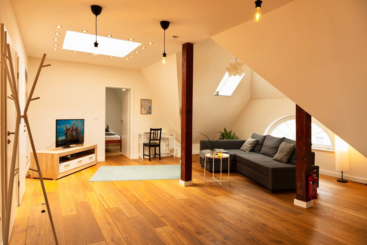 Appartamento "Landlust" Dal 2021 affittiamo il nostro bellissimo e luminoso appartamento mansardato di circa 80 mq. La porta d'ingresso è in comune. Le porte dell'appartamento devono essere chiuse separatamente. Naturalmente anche i vostri amici a quattro zampe sono i benvenuti! :)