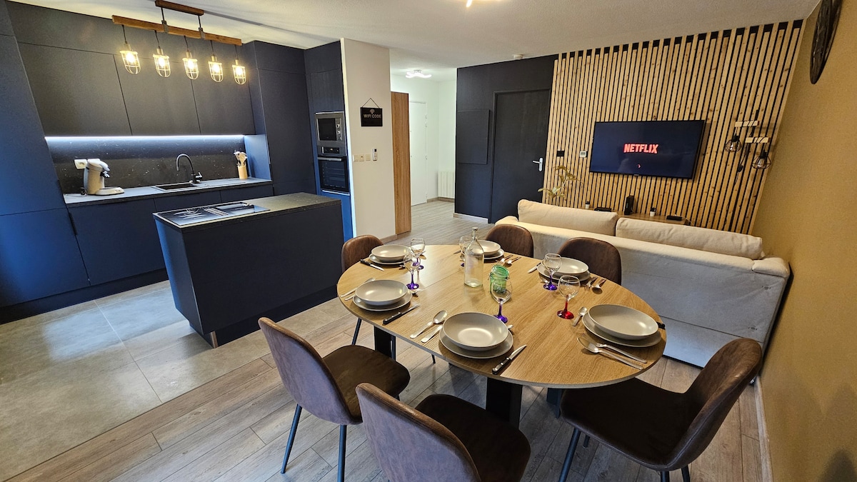 ✨ Parenthèse chic aux portes de Lyon Offrez-vous un séjour inoubliable dans cette villa lumineuse avec piscine (ouverte du 1er juin au 31 septembre), jacuzzi et jardin arboré. Pensée pour 10 voyageurs, elle propose 3 lits queen size (160x200), 4 lits simples, de grands espaces de vie, plusieurs coins bureau ,déco soignée élégante et confort absolu. À seulement 20 min de Lyon, c’est le spot idéal pour se ressourcer ou télétravailler en tribu. 🌿💦 Réservez vite votre échappée lumineuse ! ✨
