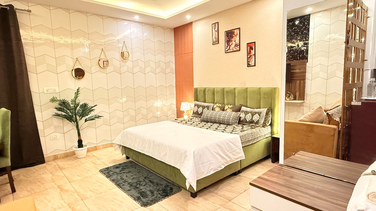 Enjoy a comfortable stay at our fully equipped Airbnb, featuring essential kitchen utensils and an electric kettle. Located near five-star hotels, malls, a theatre, and the main bus stand, as well as airport just 15 minutes away … everything you need is just minutes away. Plenty of rooftop and indoor restaurants are nearby for dining out. We also offer 24-hour power backup for a hassle-free experience. Ideal for both short and long stays—book now for comfort, convenience, and easy city access!