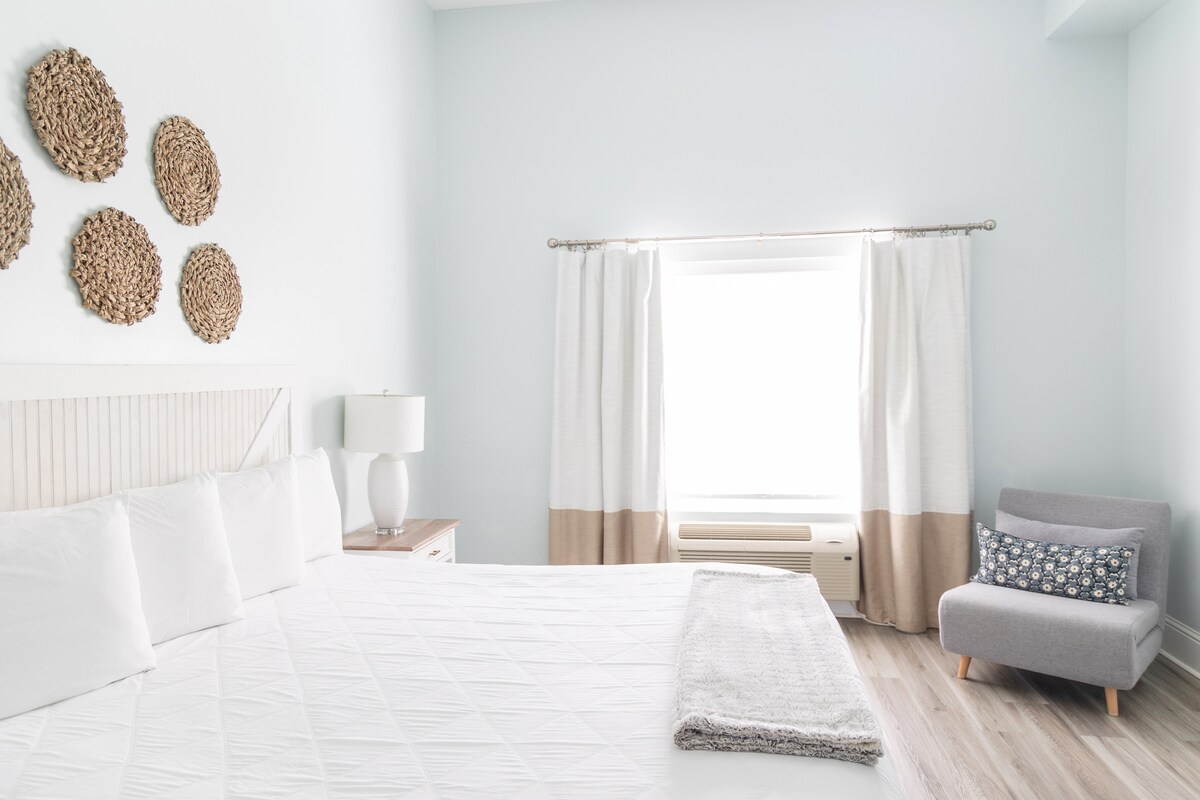 Benvenuti in una bellissima suite Junior all'Hotel Pass Christian, una pittoresca gemma nascosta! - Soggiorno con TV da 50 pollici e cabina doccia - Accogliente camera da letto matrimoniale con TV a parete da 50 pollici - Due piccoli balconi con vista sul retro dell'hotel - Boutique hotel con vista sul porto di Pass Christian - Situato di fronte al ristorante Bacchus On The Beach e vicino a Downtown Pass Christian Perle nascoste molto pittoresche!