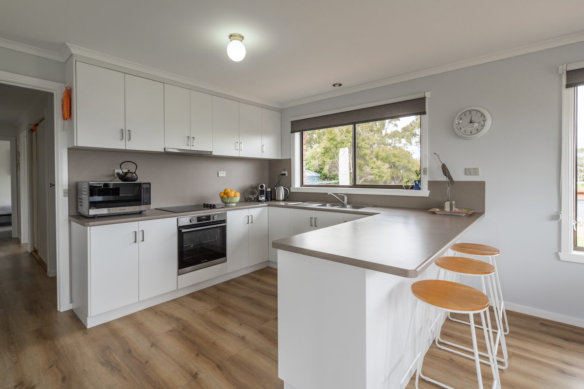 Prendi il sole a Old Salty, prenota 3 notti e goditi una bottiglia di spumante locale in omaggio per brindare alla tua vacanza sulla costa orientale! Immerso tra alberi della gomma con ampie viste sulla spiaggia, sull'oceano e sulla laguna, questo rifugio rustico dispone di uno spazio abitativo a pianta aperta, un'ala privata per gli ospiti e un ampio rifugio per i genitori con bagno interno. Goditi la terrazza soleggiata, il braciere e il cortile recintato per i tuoi amici a quattro zampe. Rilassati, esplora e respira l'aria salmastra di questa tranquilla parte della costa orientale della Tasmania.