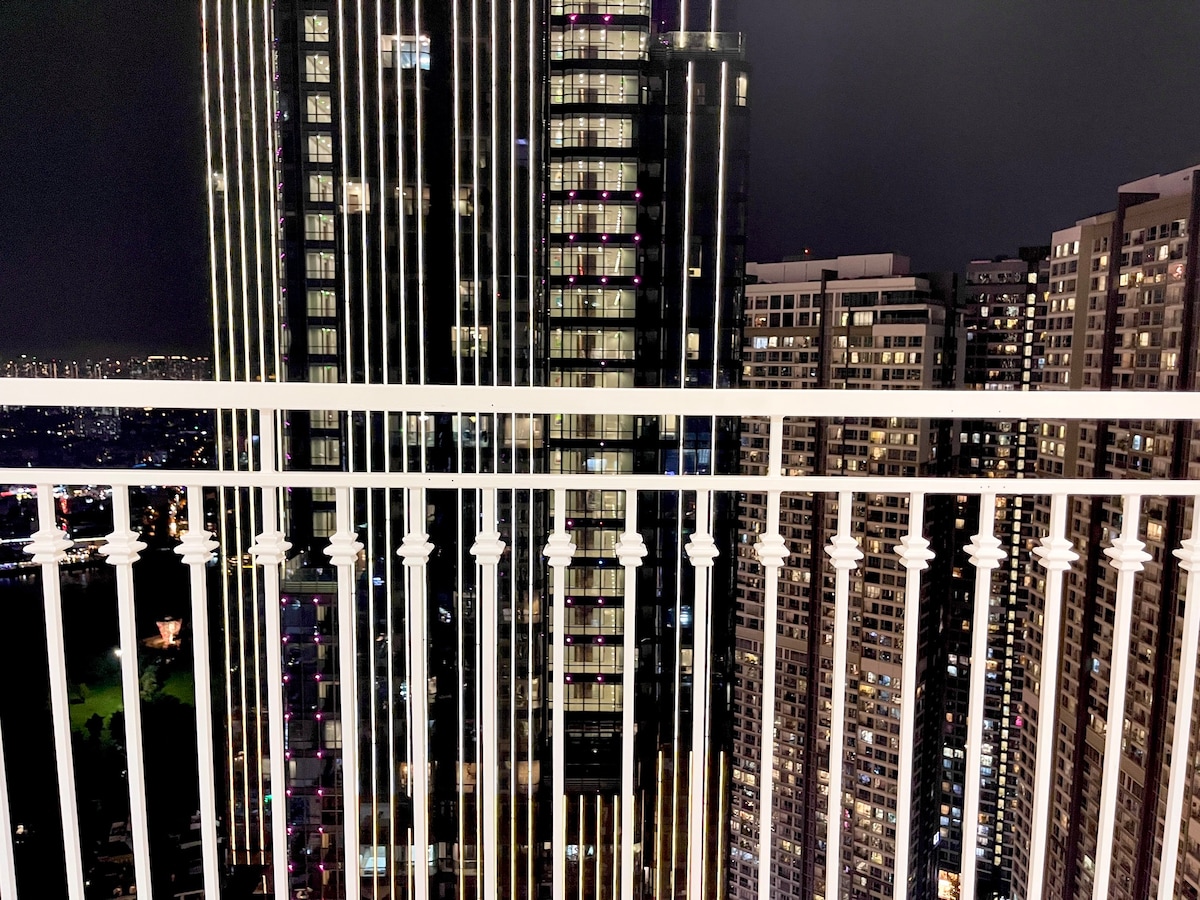 Fuggi dalla frenetica vita lavorativa quotidiana con questa rilassante vacanza di lusso! L'attico di 160 m² con 3 camere da letto e 3 bagni è stato progettato per offrire privacy totale ed è moderno e completamente attrezzato. Si trova nel superbo complesso Vinhomes Central Park. L'appartamento Amavi ti promette una meravigliosa esperienza grazie all'arredamento unico, alla splendida vista sul fiume, agli incredibili gadget ben progettati e alla nostra ospitalità che viene dal cuore. È perfetto per un grande gruppo/famiglia in vacanza. Ti invitiamo a dare un'occhiata a tutti!!!!
