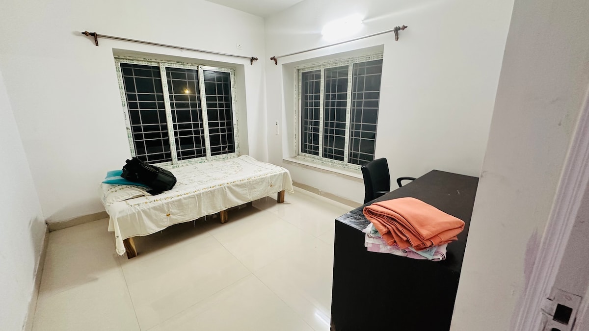 Rilassati con tutta la famiglia o il tuo gruppo di amici in questo alloggio tranquillo e curato nei minimi dettagli, lontano dai rumori ma non privo dell'energia vivace del quartiere. Un ampio appartamento arredato che puoi organizzare secondo le tue preferenze/esigenze individuali, come una tela bianca. Questa struttura fa parte di una società contemporanea ben pianificata che coltiva la freschezza della natura verde, le interazioni amichevoli e lo spazio personale. Prenota un Uber/Ola o prendi l'autobus.