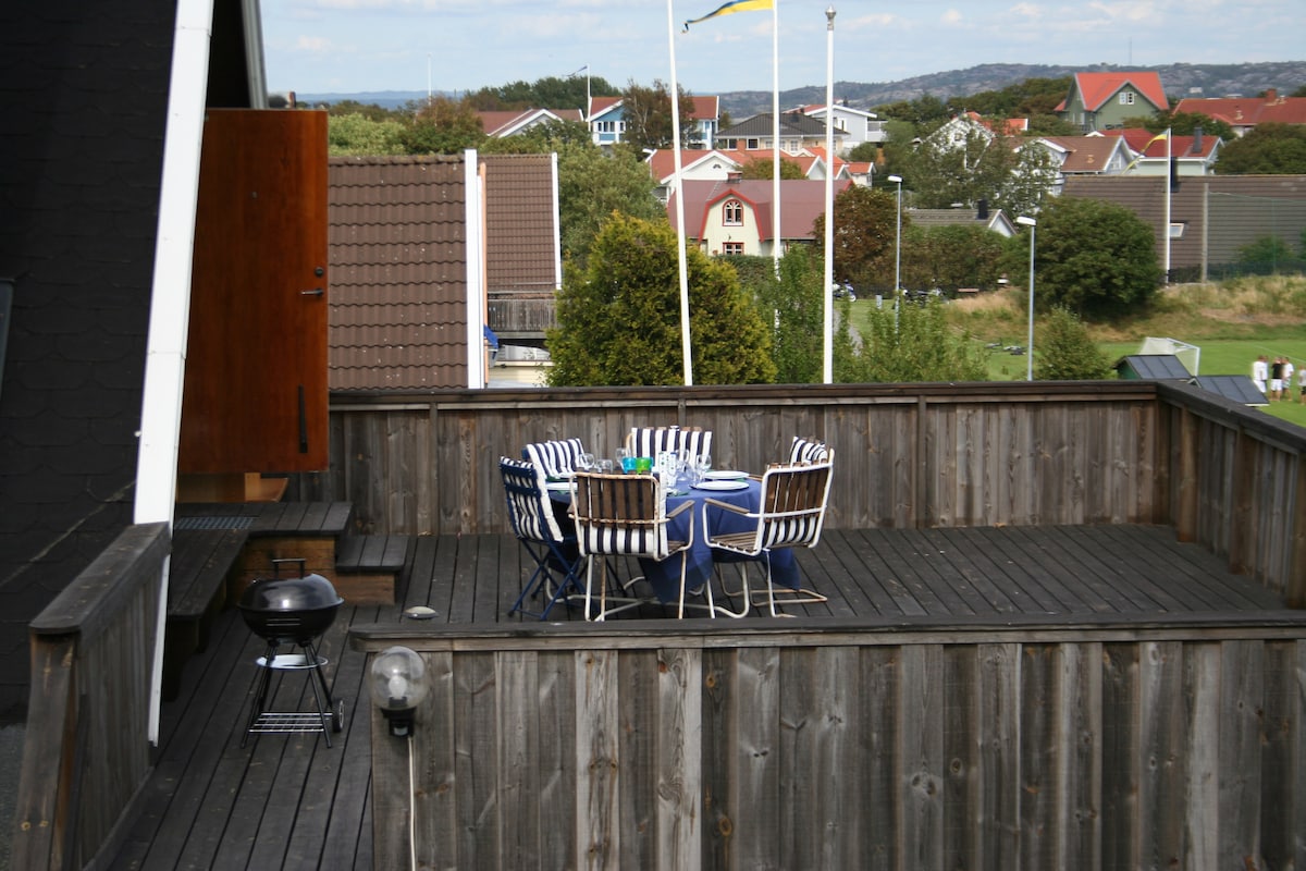 Välkommen att hyra vår lägenhet på vackra Hönö med en fantastisk havsutsikt. Härlig atmosfär med altan, balkong och trädgård. Plats för 6 gäster, 3 sovrum. Det är bäddat och klart när du kommer, lakan och handdukar ingår. Badplatsen Hästen 1 min promenad bort. 5 min promenadavstånd till det trevlig Hönö Klåva hamnområde/centrum med restauranger och butiker. Öppet året runt. Parkering ingår.Laddare till elbil finns, betalning 3kr/kWh 4 cyklar finns. Själv incheckning med dörrkod. Städning 700kr,