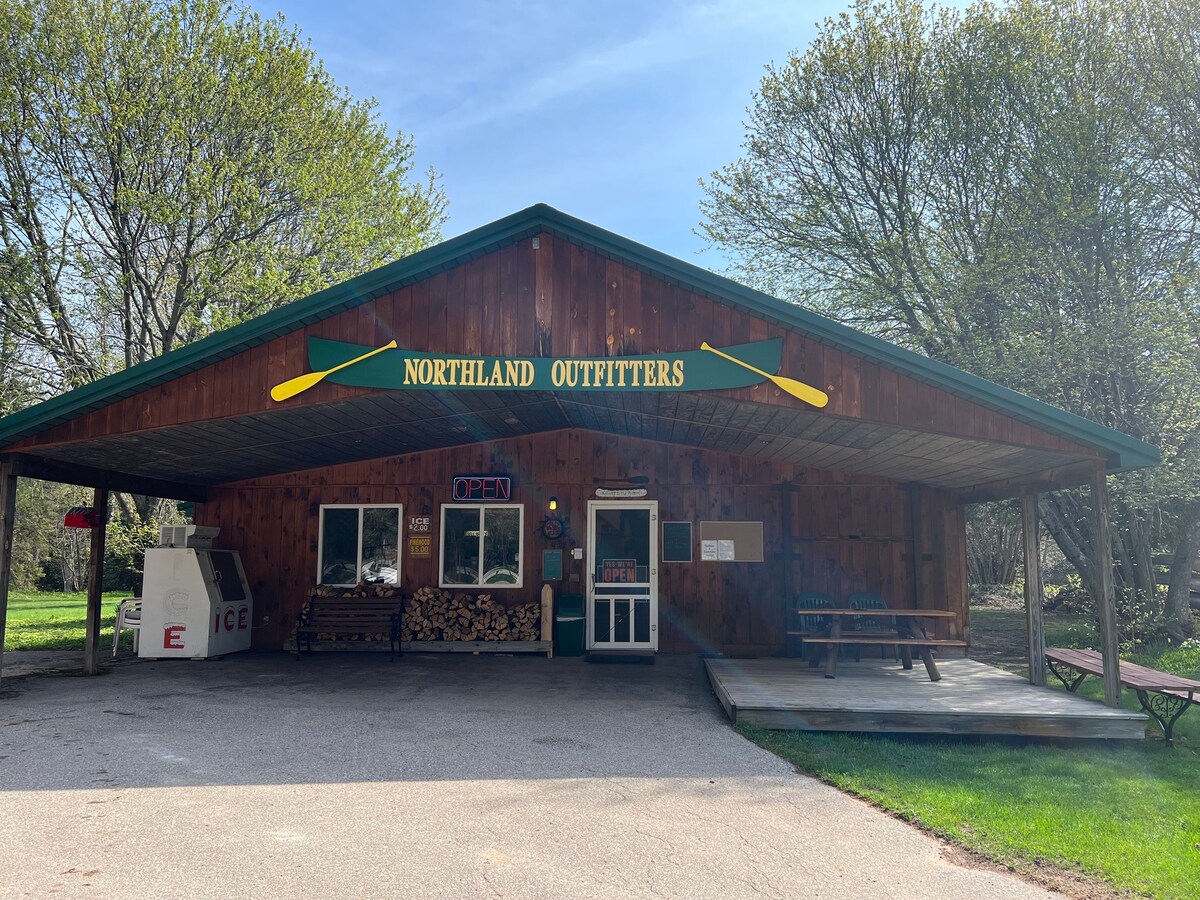 Rilassati e goditi questo tranquillo chalet vicino al fiume. La baita si trova in un campeggio a meno di 3 miglia dal Seney Wildlife Refuge, sul bellissimo fiume Manistique. Bings può ospitare fino a 4 persone. C'è un letto matrimoniale. Letto per Instagram, anche un comodo divano. Wi-Fi, TV Roku da 40", frigorifero/congelatore, forno a microonde, tavolo consolle, specchio, tavolo da picnic, braciere, 4 sedie da campeggio, macchina per il caffè Kuerig e griglia a carbone. Forniamo biancheria ed asciugamani puliti. Il bagno è a pochi passi di distanza.