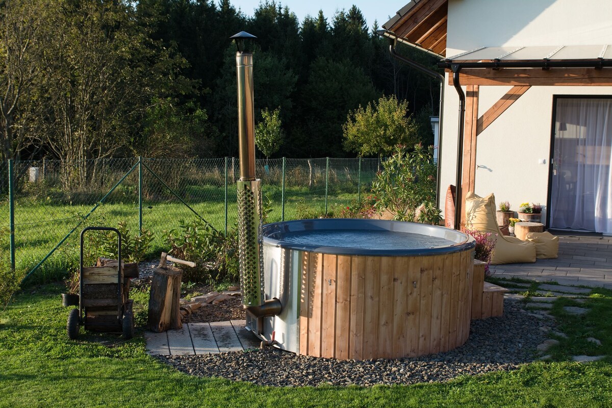 Casa romantica arredata a nuovo in un tranquillo villaggio con genio dei luoghi. Cucina recentemente attrezzata, comodo divano con stufa norvegese e un bel bagno. Il villaggio di Hlásnice-Trpín è circondato da colline con splendide vedute e sentieri attrezzati per escursioni a piedi e in bicicletta. Probabilmente tutti quelli che sono stati qui sono rimasti sorpresi di quanto qualcosa di così bello possa essere così vicino. Hlásnice è adatta per le coppie che cercano romanticismo, stile, personalità e privacy. Allo stesso tempo, vi chiediamo di rispettare la privacy degli altri abitanti del villaggio.