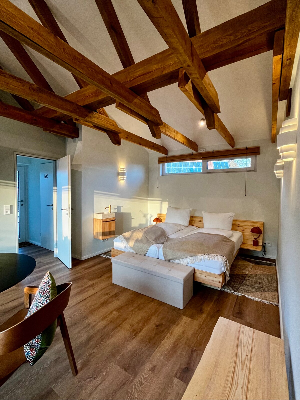 Benvenuti nella nostra casetta sulla diga dell'Elba! La nostra casa e la casa degli ospiti indipendente sono state costruite nel 2021. La guest house è molto accogliente ed elegante con molti dettagli, come mobili, finestre, ecc., che sono stati progettati e costruiti su misura e con grande attenzione ai dettagli. Chi è alla ricerca di pace e tranquillità in un ambiente arredato con stile è nel posto giusto. La pista ciclabile dell'Elba e la diga dell'Elba si trovano a circa 200 m da noi.