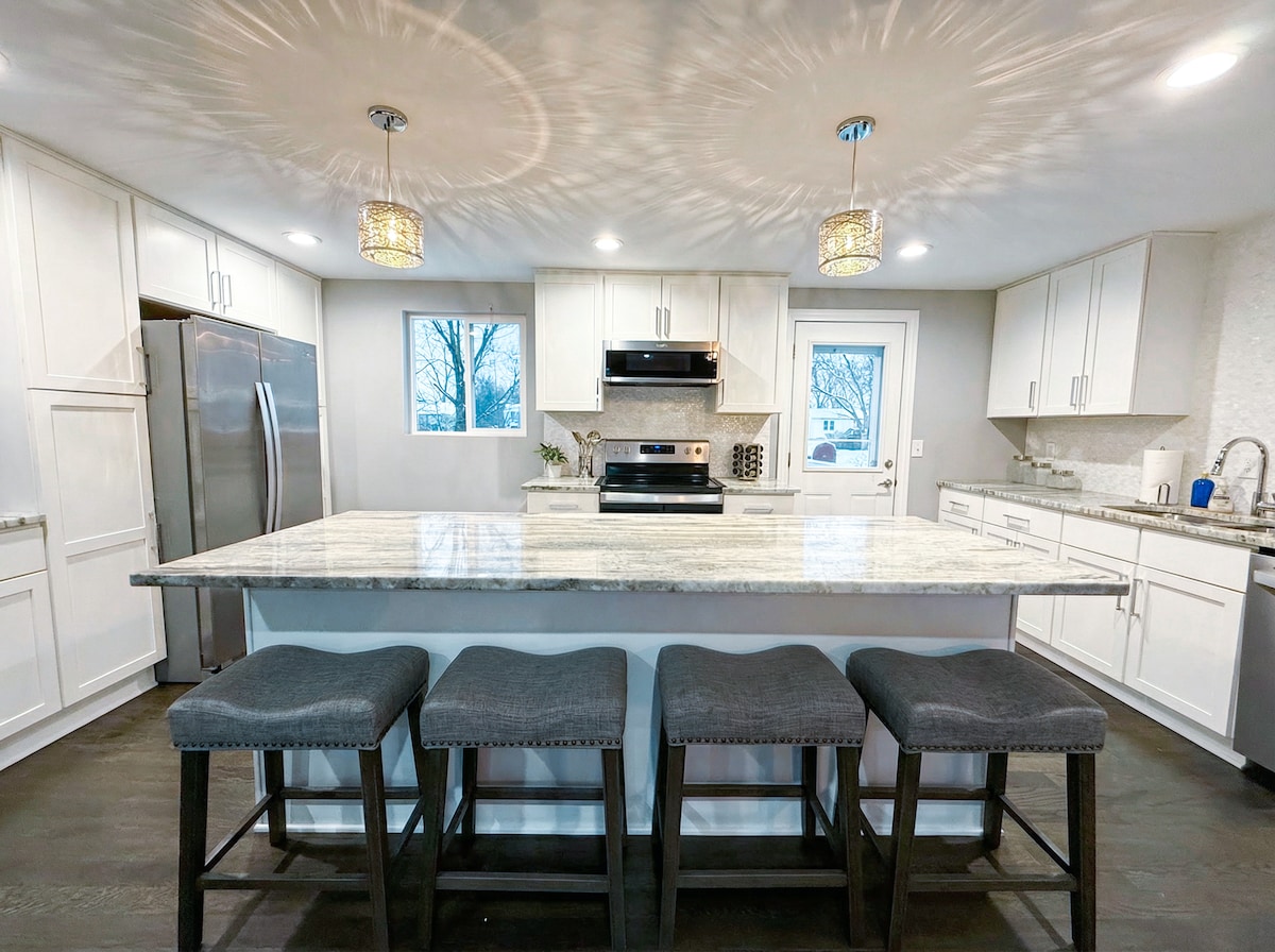 Confortevole, moderno e situato in posizione strategica. A pochi minuti dall'aeroporto John Glenn, dall'OSU, da New Albany, da Columbus, da molti ristoranti, palestre, parchi, sentieri, birrerie artigianali, negozi e altro ancora! La tua casa lontano da casa è pulitissima e dispone di piani di lavoro in granito, nuovi elettrodomestici in acciaio inossidabile, una cucina luminosa e completamente attrezzata, una smart TV HD da 65 pollici, wi-fi veloce, spazio di lavoro dedicato, lavatrice e asciugatrice, patio coperto con mobili e braciere, ampio cortile privato ben curato accanto a un parco.
