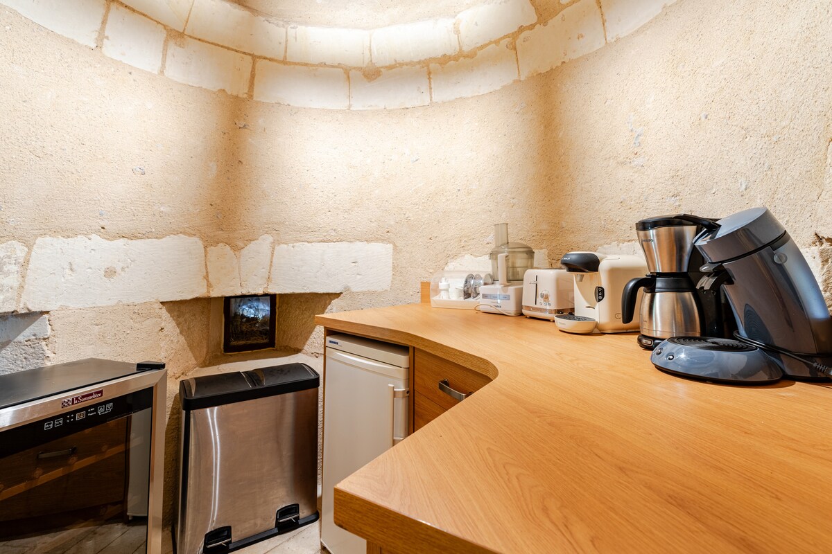 Casa semi troglodita dal fascino romantico, situata in posizione ideale tra Tours e Amboise, composta da: - Soggiorno troglo: cucina attrezzata (colazione per soggiorni di 1 e 2 notti), soggiorno e salotto. - Suite non troglo: camera e bagno, letto Emma 160 cm, doccia all'italiana. - Area benessere privata illimitata con spa, sauna a infrarossi e lettino per massaggi (massaggi corpo su richiesta e opzionali con una specialista professionista in trattamenti benessere