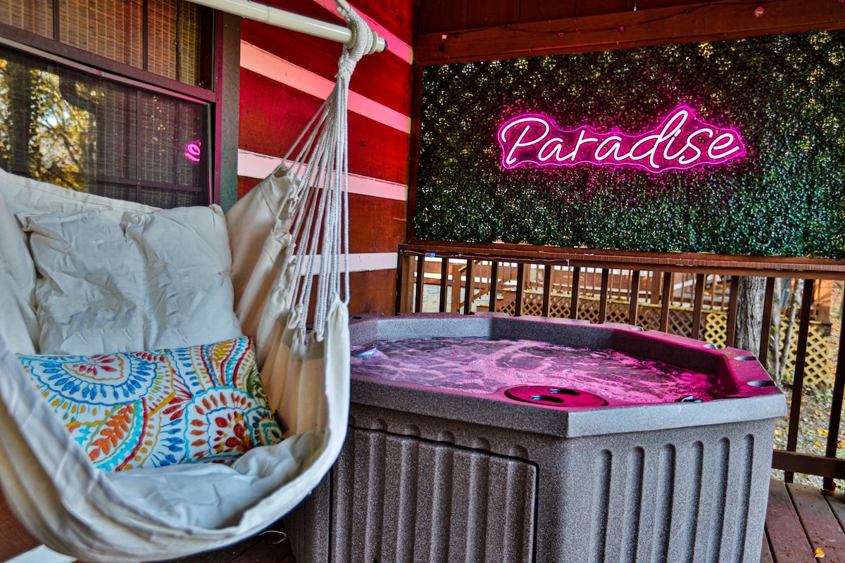 Vieni a rilassarti nel nostro angolo di bosco. La chiamiamo Camp Olio, una baita di legno piena di fascino. Situato su pochi acri di terreno per lo più boschivo, ha quell'atmosfera da baita di montagna, ma in una posizione incredibilmente comoda. Sei a soli 13 miglia dalle Great Smoky Mountains e vicino a Foothills Pkwy, Townsend, Knoxville, Maryville, Pigeon Forge e Gatlinburg. È un luogo accogliente con una zona pranzo nel patio, una vasca idromassaggio, bracieri, un dondolo e amache.