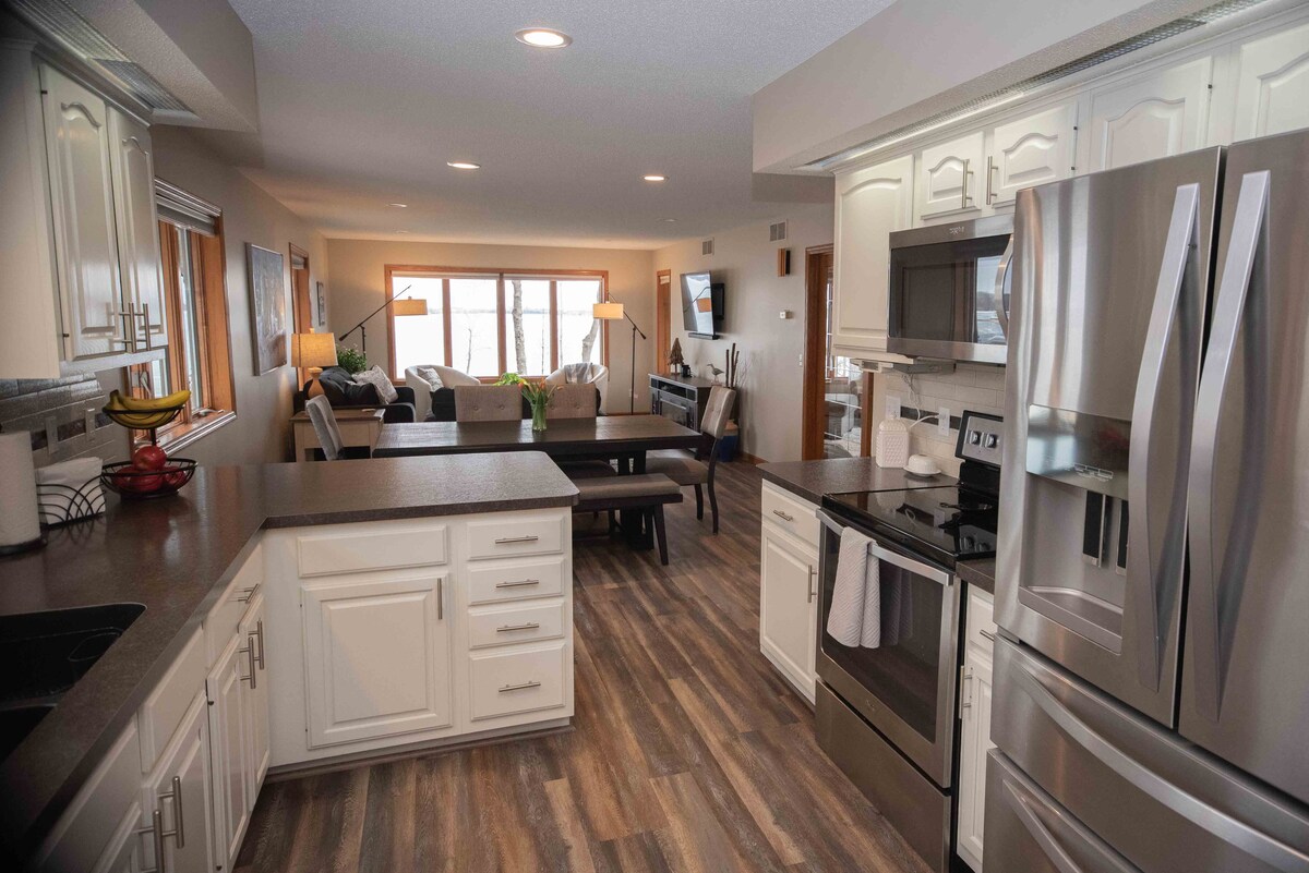 Goditi la vita sul lago al suo meglio nella tua casa privata proprio sull'acqua! Non c'è bisogno di attraversare una strada trafficata per l'accesso al lago! Goditi la vista mozzafiato dalle grandi finestre e dal cortile sul lago Madison nella tranquilla "Town Bay". È il lago perfetto per la pesca e le attività ricreative in estate e per la motoslitta, la pesca sul ghiaccio e le corse automobilistiche in inverno. Madison Lake ha anche appena costruito 2 campi da pickle ball nel 2024!