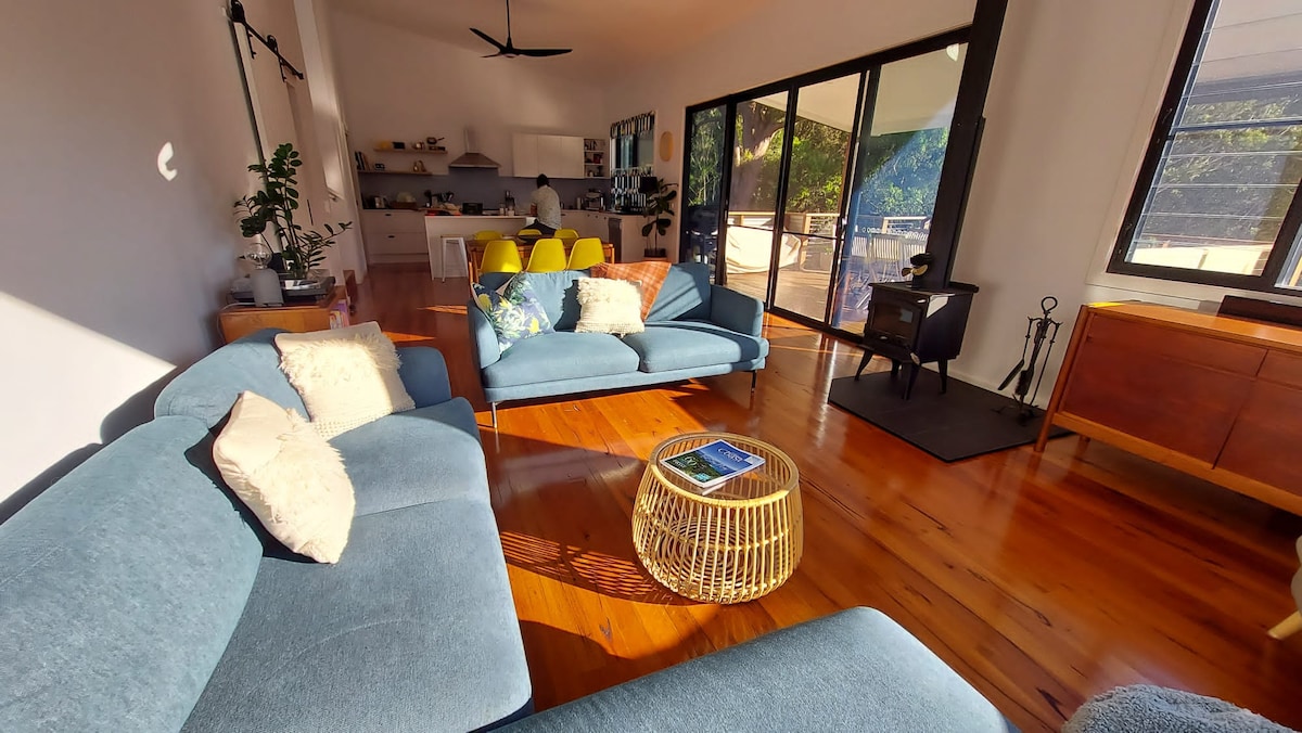 The ultimate beachside getaway, just a stones throw away from the pristine waters that is Blueys Beach. Double storey house offering 3 bedrooms, 3 bathrooms, 2 living areas, study area and a well equipped kitchen. The property includes a BBQ and picnic tables, perfect outdoor entertainment overlooking the beach. Get together with family and friends to relax and enjoy the cool breeze and ocean views! Our home welcomes house trained pets! *Please note some construction noise may be present*