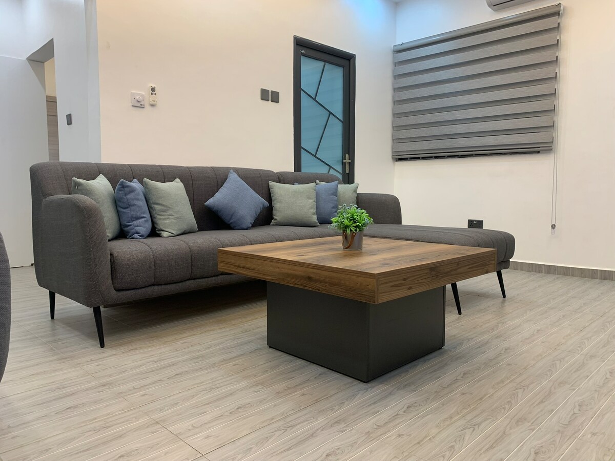 Enjoy an enriching experience in this luxurious home@Kasoa perfect for your family and groups. House fully fitted with ACs,functional kitchen,super comfy beds,cozy couch,security,unlimited internet,Dstv,Netflix and cozy pergola for your outdoor sitting. 25 mins drive to the beautiful beaches and 45 mins drive to airport without traffic. Kick back and relax in this calm ,serene stylish space.