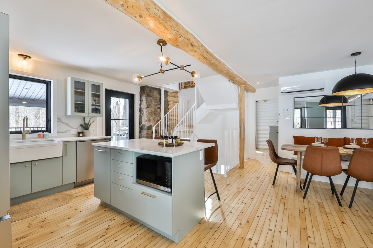 Chalet spa & lago, stazione di ricarica, 15 minuti da St-Sauveur
