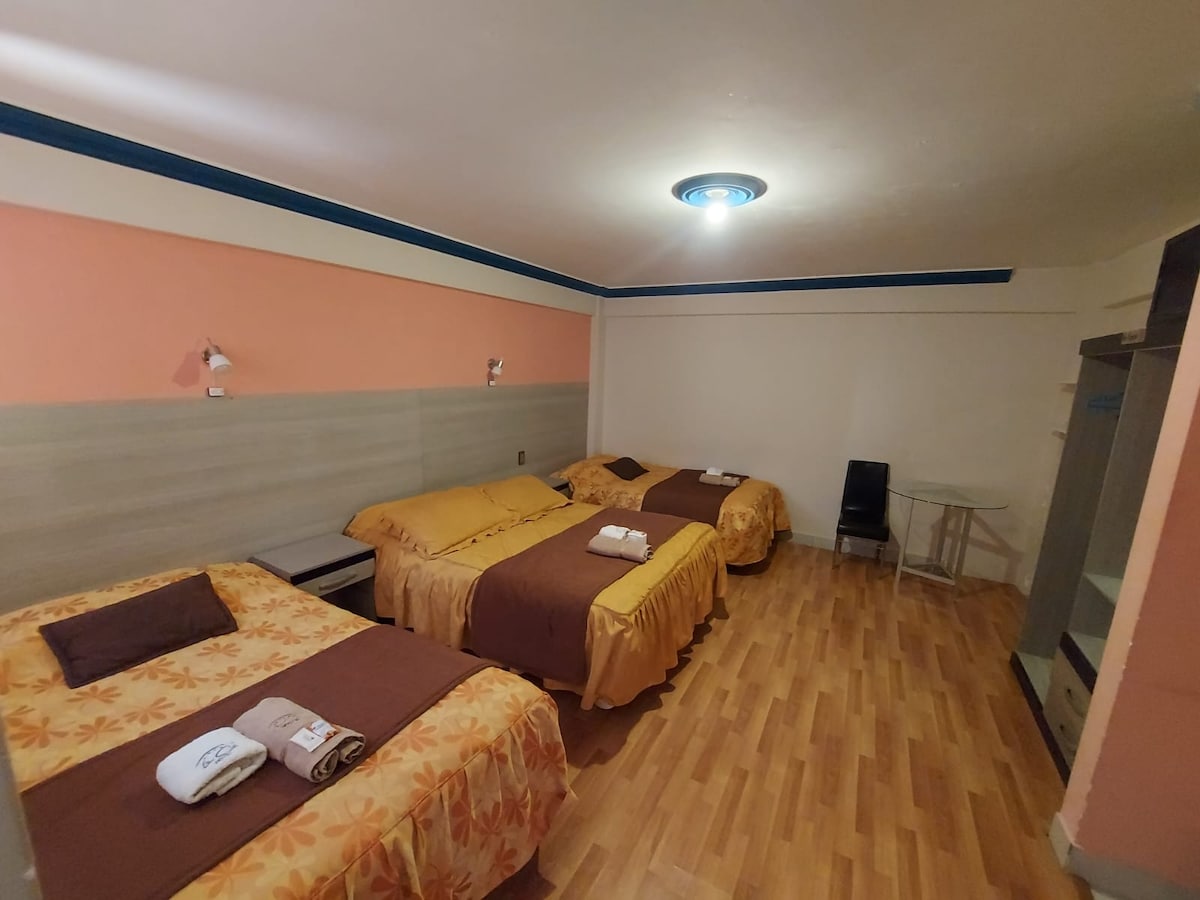 Bella camera con bagno privato e aree comuni nel centro della città, a un isolato dalla piazza principale, vicino a zone commerciali, ristoranti e banche, il venerdì e il sabato c'è uno sconto perché potrebbe esserci rumore a causa di un ristobar all'ultimo piano, tieni conto di questo aspetto prima di prenotare quei giorni.