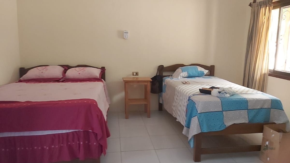 Casa molto confortevole con tre ampie camere da letto e 2 bagni completi, angolo cottura, sala da pranzo, piscine condivise, piscine condivise, churrasqueras condivise, sentieri verdi, ampi giardini, campi da polo, tennis, calcio e basket e una splendida laguna naturale. dispone di parcheggio gratuito, WiFi, tv. Situato a 20 minuti dal centro, molto vicino all'aeroporto di Viru Viru