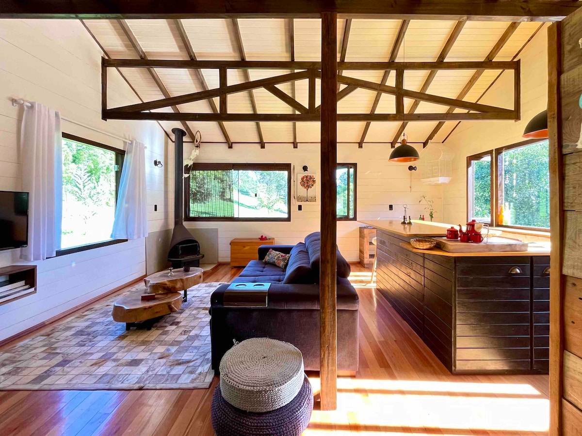 La nostra capanna è ideale per le persone che cercano un soggiorno tranquillo, accogliente e confortevole. L'ambiente integrato offre raffinatezza, praticità e connessione con la natura. All'ingresso, sarai accolto da un'atmosfera accogliente, con dettagli attentamente progettati. Con il freddo caratteristico della regione, il pavimento riscaldato della capanna garantisce comfort termico in tutto l'ambiente. Le ampie vetrate offrono una vista mozzafiato sulla natura circostante, inondando lo spazio di luce naturale.