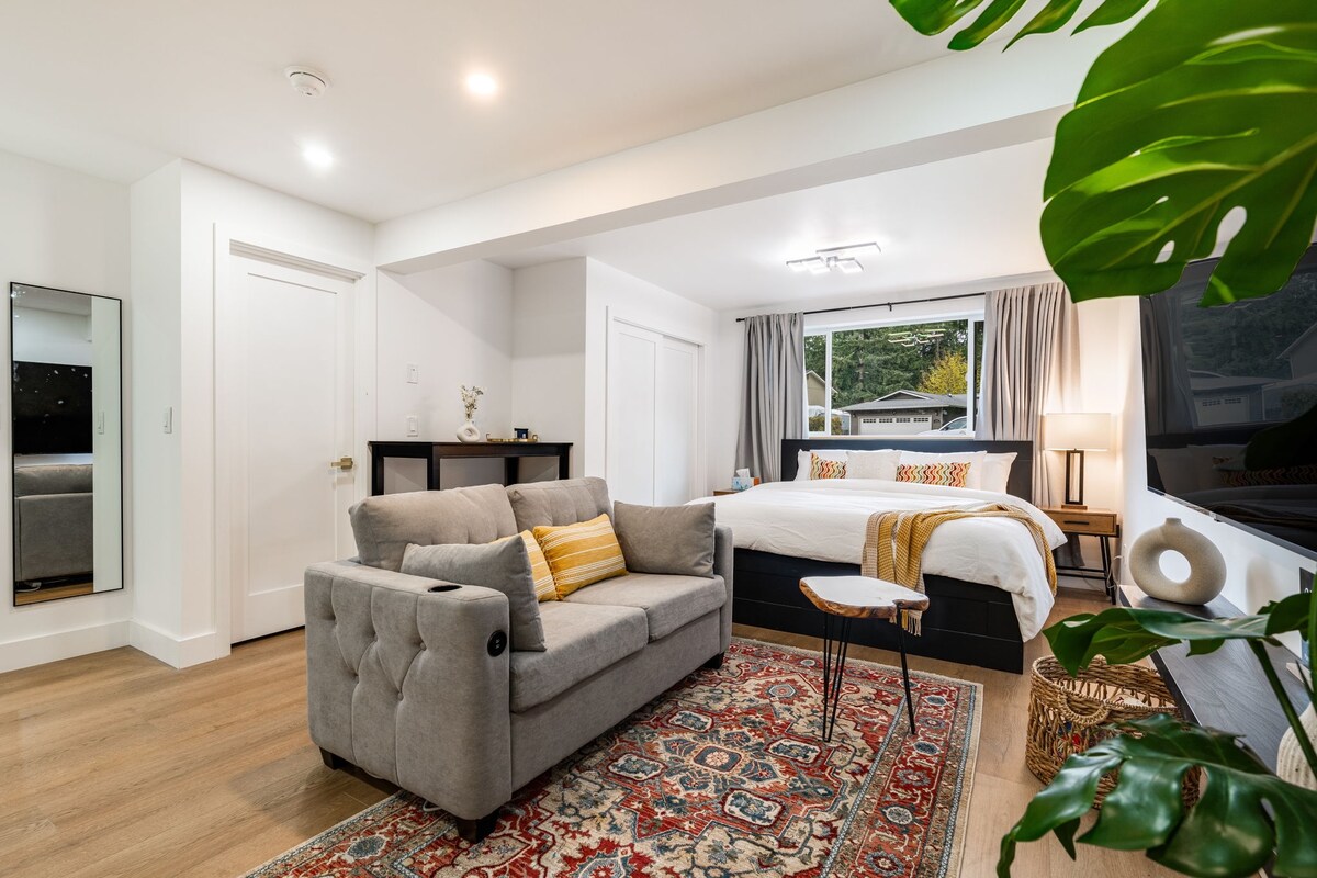 The Crow 's Nest è un monolocale luminoso e confortevole con 3/4 bagni, zona salotto, zona pranzo e una TV via cavo. Dispone di un angolo cottura con frigorifero e un forno da banco per soggiorni più lunghi. Si tratta di un monolocale privato con serratura, con ingresso privato e parcheggio privato. In loco sono disponibili servizi di lavanderia. In posizione centrale, con comodi autobus a pochi passi e facile accesso all'autostrada. Unisciti a noi nei comfort di casa nello splendido Pacifico nord-occidentale.