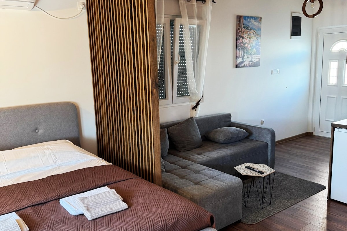 Goditi il tuo soggiorno in un nuovissimo monolocale a Podgorica! Questo accogliente spazio dispone di un comodo letto a scomparsa, una cucina ben attrezzata e un tranquillo balcone per il tuo relax. Goditi la pace e il comfort a soli 5 minuti a piedi dal centro città e a 2 minuti a piedi dalla stazione principale dei treni e degli autobus. Perfetto per un soggiorno delizioso nel cuore di Podgorica!
