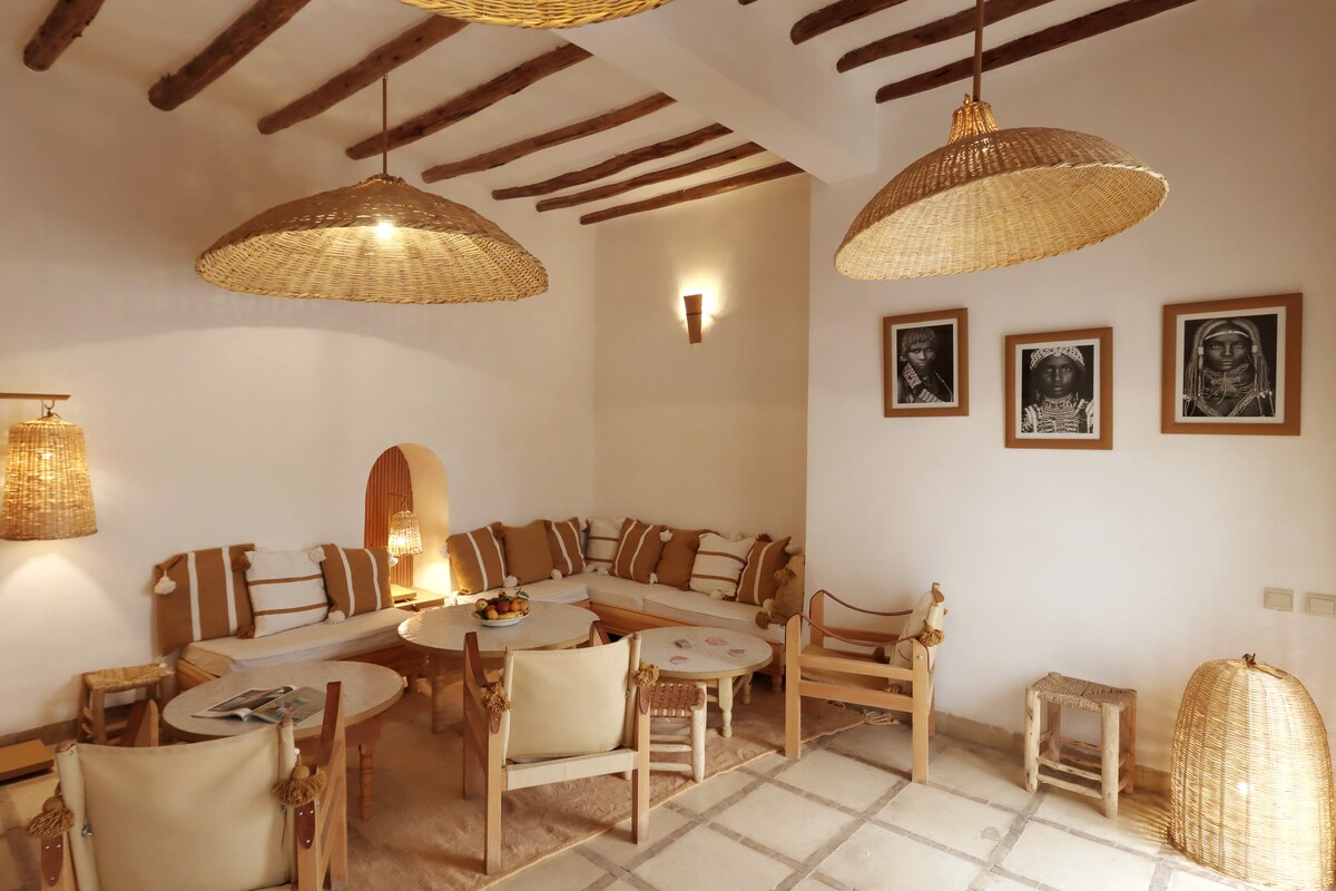 Dar Nurah ist ein stilvolles Riad für bis zu 6 Gäste, besonders komfortabel für Familien, Freunde oder Paare mit bis zu 4 Personen. Das Haus wird immer komplett vermietet, sodass ihr das Riad ganz für euch allein habt und keine anderen Gäste anwesend sind. Die Wohnfläche beträgt insgesamt ca. 180qm. Es gibt 2 wunderschön eingerichtete Schlafzimmer mit eigenem Bad, ein Wohnzimmer mit Schlafsofa und viele offene Wohnbereiche. Auf der Dachterasse findet ihr einen Essbereich für 4 - 6 Personen.