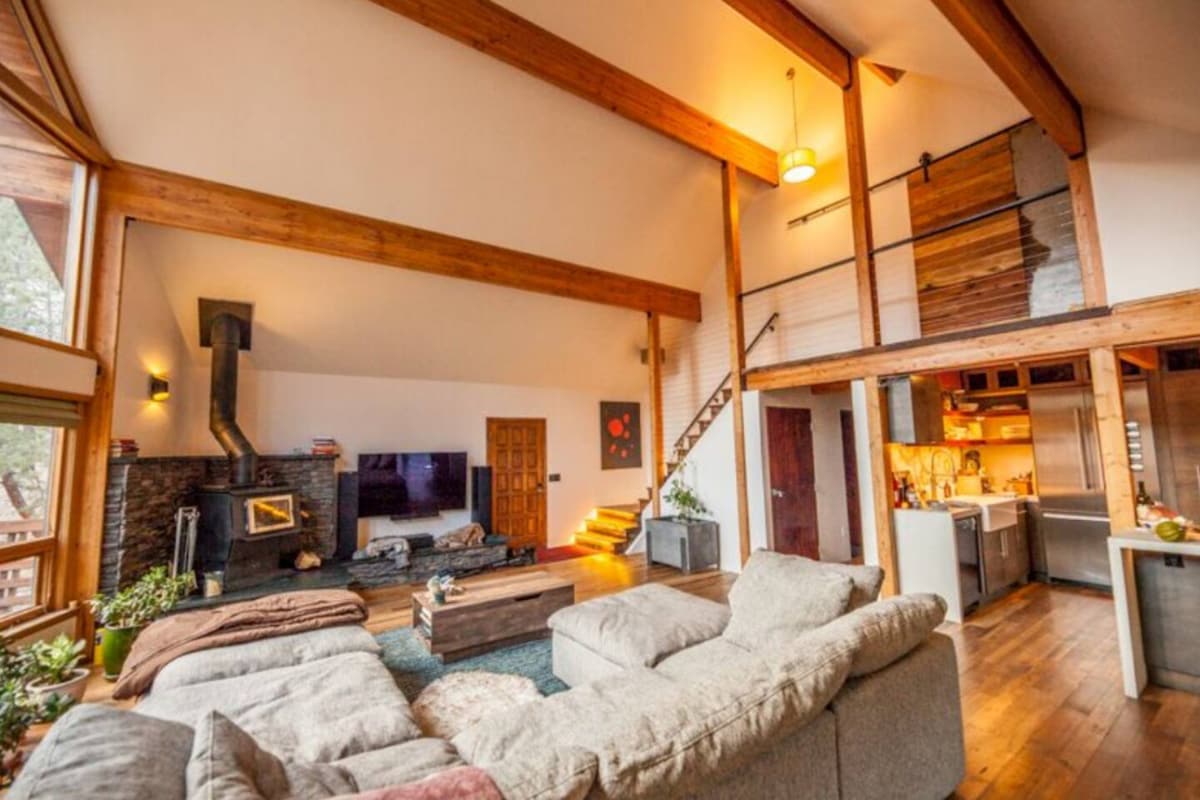Welcome to the Rusty Skillet Ranch + Spa. Luxury A-Frame spa retreat secluded on 12 private acres, just 15 minutes from Boulder and 40 minutes from Denver. The ultimate retreat to relax and unwind. Features a Japanese Cedar Hot Tub, a Barrel Sauna, breathtaking views, indoor fireplace, outdoor shower overlooking a creek, and luxury indoor–outdoor living. An optional private lower-level suite is available for $250/night and includes three queen futon beds, it sleeps up to 6 additional guests.