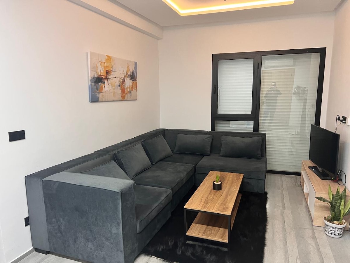 Bright and spacious apartment, ideal for travelers seeking comfort and tranquility. The apartment offers a stunning view of Mount Bougarnine and the Bay of Tunis. The location is a real asset. You'll be just a 10-minute walk from a shopping mall and a 25-minute walk from the beach. Additionally, the historic archaeological site of Uthina is only a 30-minute drive away — perfect for alternating between nature, urban activities, and historical discoveries.