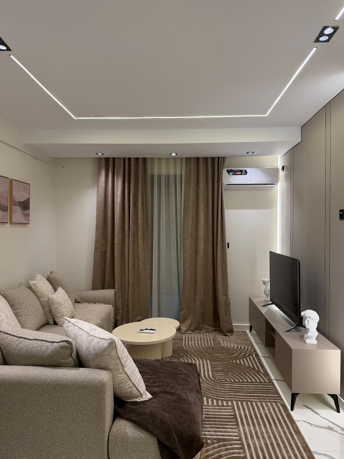 Magnifique appartement luxueux tres bien situé, avec deux chambres et une cuisine ouverte sur un séjour très lumineux avec une décoration chic et épurée! vous y trouverez toutes les commodités modernes qui rendront votre séjour inoubliable, l’eau est disponible H24 grâce a notre puit, situé dans une rue calme dans le quartier de Cité Petit, connu par son grand boulevard rempli de magasins, de cafés, de restaurants et rotisseries, les transports en commun se trouvent a 200m de l'appartement.