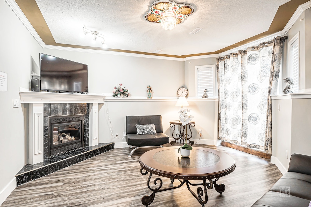 Casa piena contemporanea con uno spazio abitativo di 3500 PIEDI QUADRATI situato in una zona residenziale sicura e tranquilla vicino all'aeroporto e a Taralake. Totale 7 camere da letto di grandi dimensioni, 9 letti e 4 bagni completi che possono ospitare più di 16persone. WIFI 5G, due cucine complete, tre salotti con TV, due set di lavanderia. Ideale per grandi famiglie e gruppi. 5 minuti in auto dall'aeroporto, 8 minuti a piedi da C-Train, autobus e ristoranti, bar e supermercati. Il grande YMCA si trova a 5 minuti a piedi.
