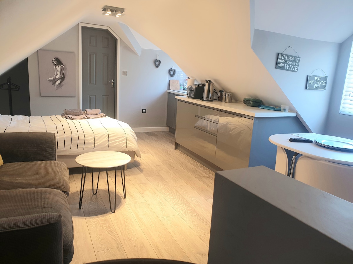 Camera matrimoniale indipendente con bagno interno con doccia e zona cucina. Accesso privato e parcheggio. Monolocale completamente privato e indipendente, ma parte della nostra casa. Adatto a professionisti/coppie per brevi periodi. Ideale dal lunedì al venerdì, ma ottimo anche nei fine settimana per visitare la zona. Wifi gratuito, TV. È indispensabile l'auto Situato nel villaggio di White Waltham, appena fuori Maidenhead. Facile accesso allo svincolo 8/9 della M4 e alla stazione di Maidenhead. Comodo anche per Windsor, Henley, Ascot, Reading