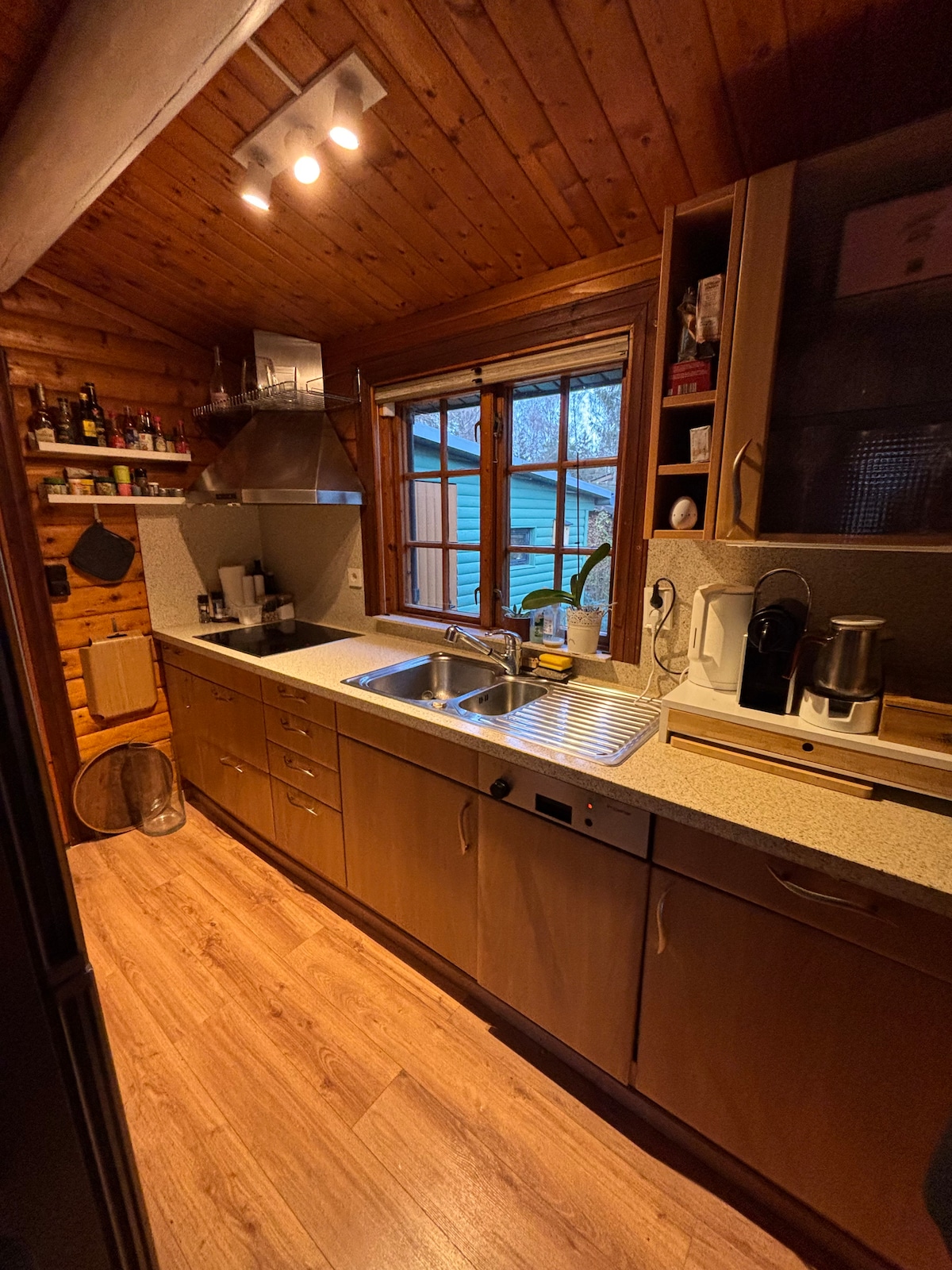 Beautiful log cabin 400m away (approx. 7 minutes on foot) from Lake Bernstein. Very quiet location surrounded with trees and beautiful small holiday homes. The garden is overgrown with plants so that it cannot be seen in from outside and is exclusively available. A Gasgrill and fireplaces both inside and outside with wood is included. Whirlpool (75€ / stay; April-Oct.) and sauna (25€ for / night; all year) can be booked for additional cost. A Carport for one car (up to 2 m high) is available.