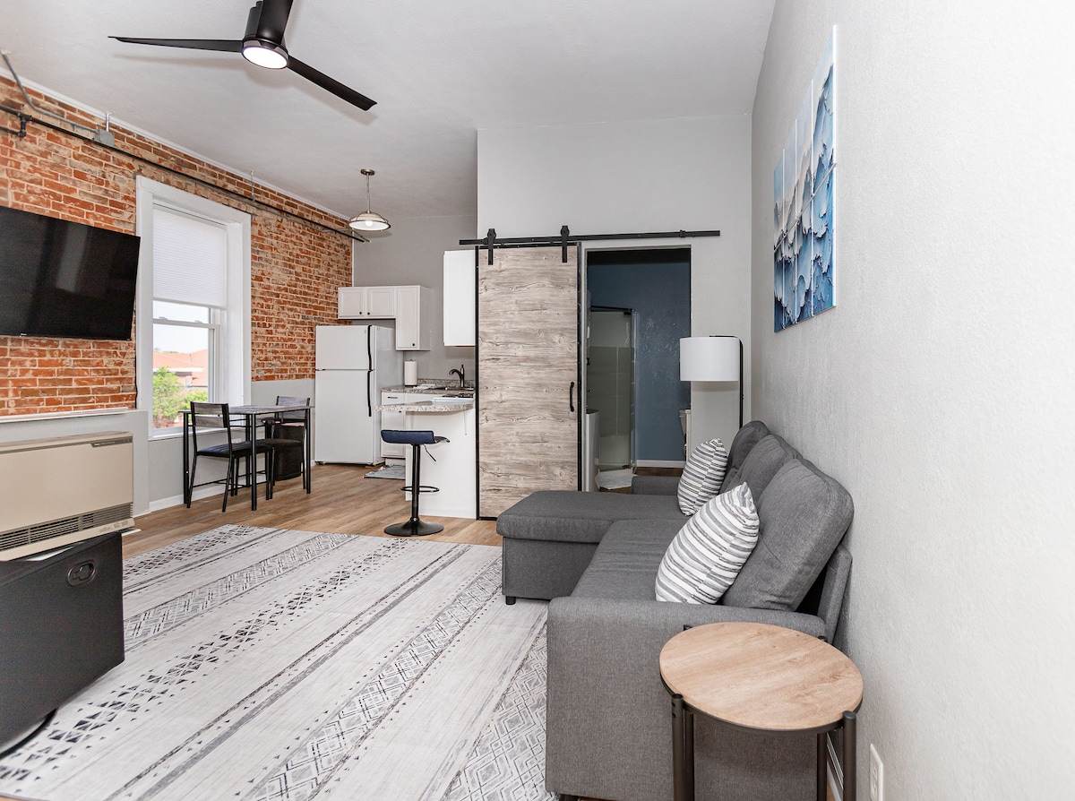 Esclusivo loft monolocale in centro con balcone che si affaccia sul fiume Cedar. Loft che può ospitare fino a 4 adulti, un letto matrimoniale e 2 futon di alta qualità a grandezza naturale (box per bambini disponibile su richiesta). Situato proprio in centro, a pochi passi da negozi e locali notturni. Questo alloggio non dispone di una cucina completa (piccolo lavandino, piccolo frigorifero con congelatore, piastra per pizza, forno a microonde e piastra elettrica sono nell'area bar) Parcheggio pubblico situato all'uscita della 1st St NE, a nord di Bremer Ave.
