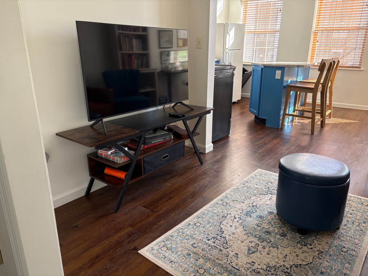Questa casa confortevole e accogliente si trova nel cuore del centro di Lawrenceburg ed è a pochi passi da tutto! Abbiamo un ampio cortile sul retro, ideale per le famiglie che vogliono godersi il tempo lontano da casa vicino al focolare. C'è una grande TV all'aperto con sedie adirondack e tavoli da picnic per rilassarsi. Il soggiorno ha una TV da 75' - entrambe le camere da letto hanno TV da 55'. Ampio divano componibile in soggiorno e grande tavolo da pranzo in cucina. Bar per il caffè, lavatrice e asciugatrice, portico annesso recintato.