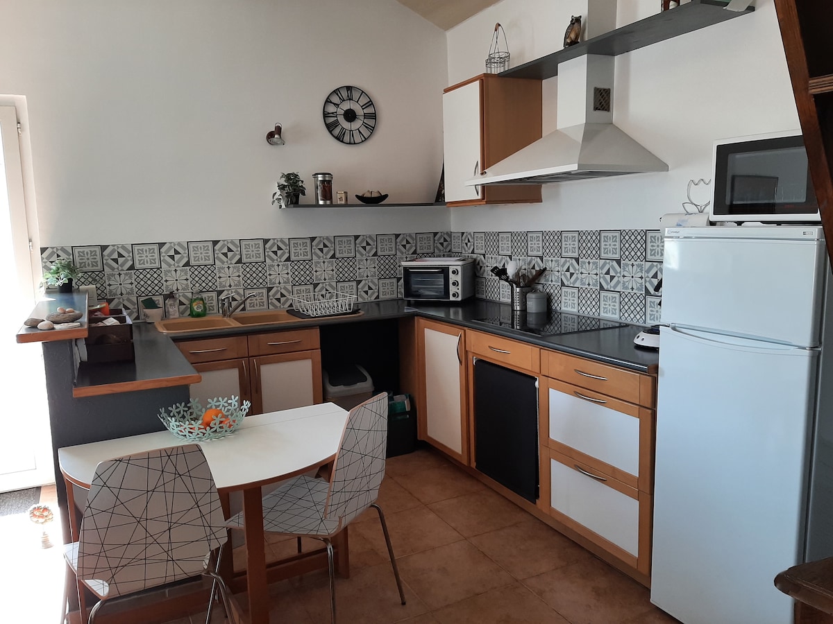 Affittiamo il nostro piccolo cottage in posizione ideale tra i vigneti héraultaises. Questo piccolo paradiso ti permetterà di rilassarti godendoti una zona turistica (Lago Salagou 5 km, mare 40 minuti, circhi Mourèze Navacelles, Saint-Guilhem-du-Desert Larzac, ...). Sulla strada per Saint-Jacques de Compostela, la piccola cappella di Hortus si trova nel giardino! A 3 km si trova una piccola città che dispone di tutti i comfort (tra cui un bellissimo mercato del sud ogni mercoledì). In 30 minuti puoi raggiungere le città di Montpellier, Béziers e Sète. Questa casetta ha un salone con cucina a vista, una camera da letto e soppalco con letto matrimoniale e bagno con vasca. Gli arredi sono semplici ma pratici e di buon gusto. La terrazza ti permetterà di preparare snack di facile utilizzo all'ombra della recinzione in bambù e potrai goderti la terra verde di 2000 m².