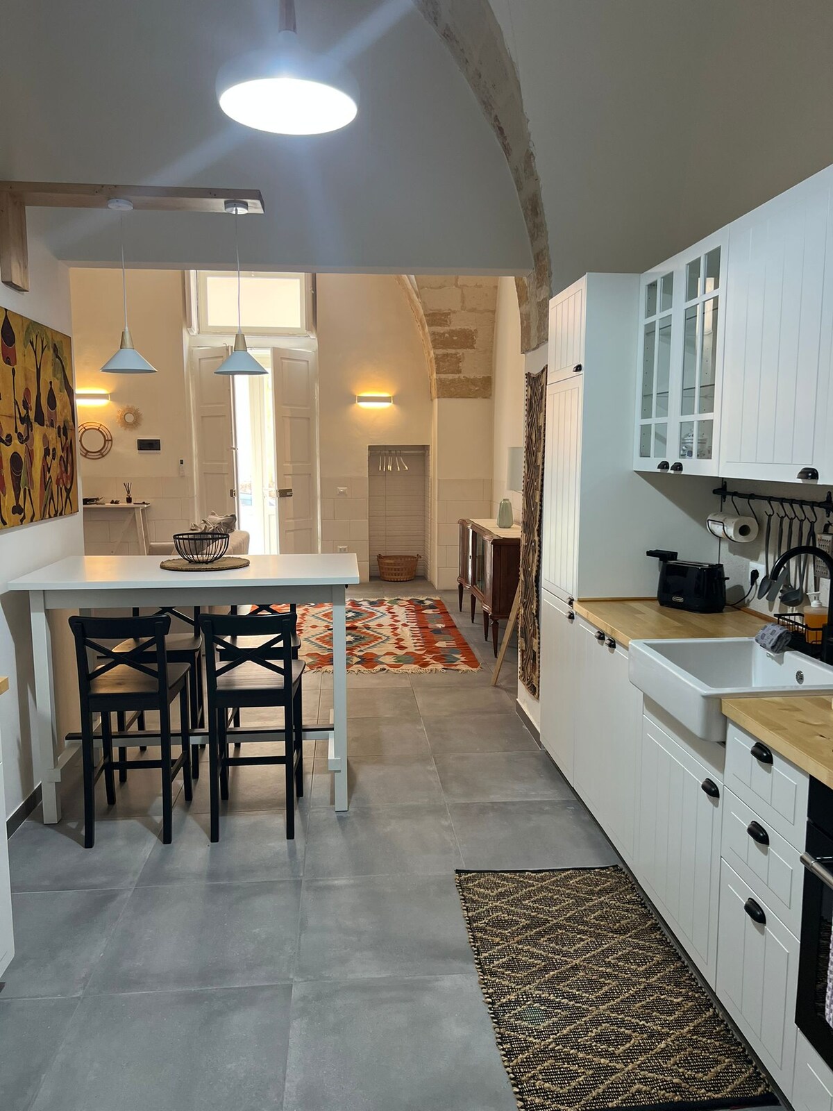 CIS: BR07401291000000188 CIN: IT074012B400033730 Vivi la magica sensazione di trovarti tra passato e presente: è una dimora storica! I pavimenti d'epoca e le pareti in pietra fanno da sfondo a un ambiente arredato con oggetti di design, vecchie ceramiche e mobili locali. L'ampio terrazzo privato, con solarium e doccia calda, saprà entusiasmarti: potrai rilassarti con un bicchiere di vino al tramonto, godere del sole su comodi lettini o preparare una cena in una magica atmosfera pugliese.