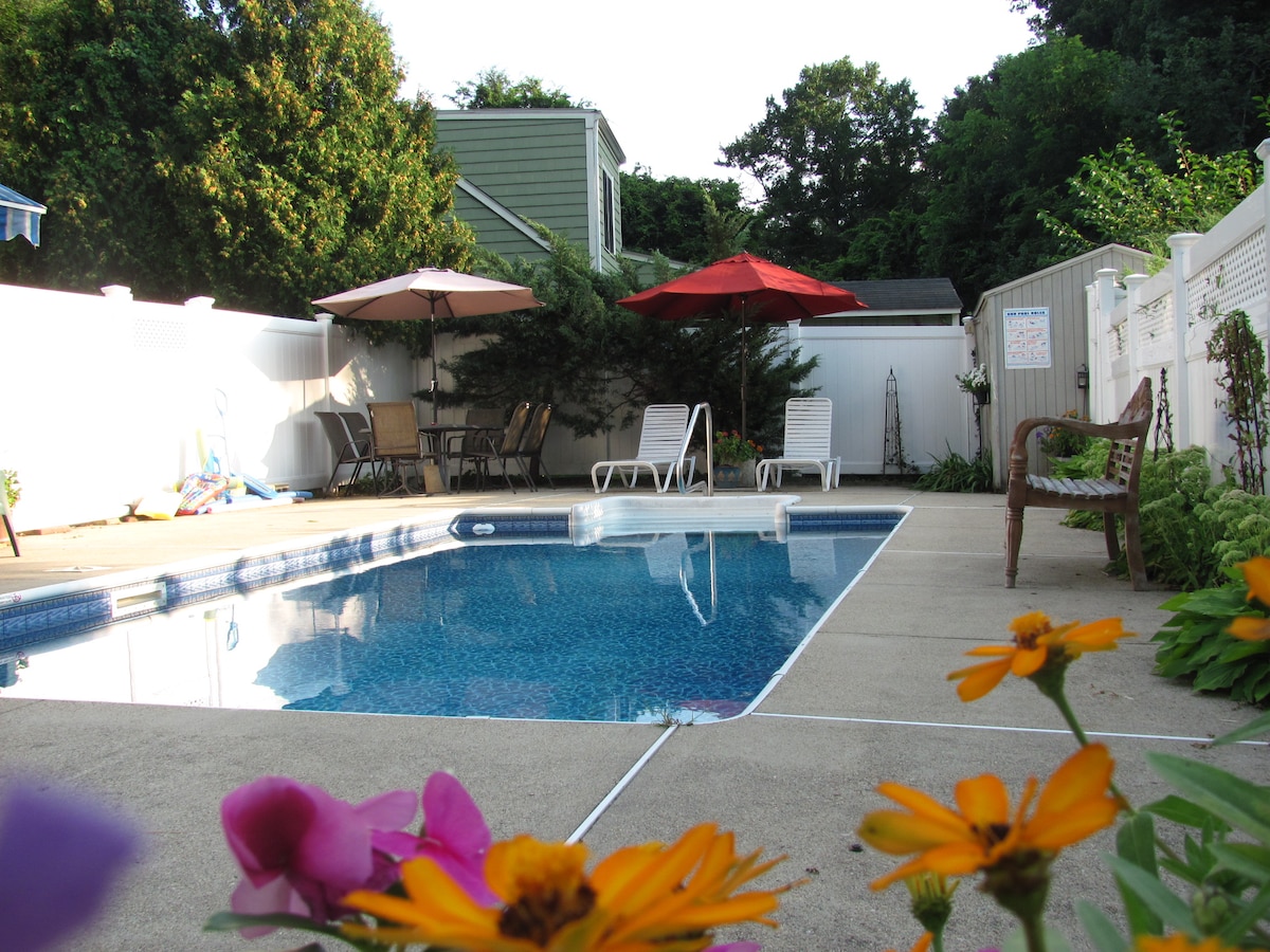 Our beautiful single level home is centrally located with easy access to beaches, island ferries, Providence, Newport and Boston. We have new beds and appliances, along with the comfort of central air conditioning. Easy stroll to both downtown Bristol, the Town Beach, East Bay Bike Path, and Colt State Park. Our back deck is a delightful place to relax and enjoy the shaded backyard, which has a fire pit, BBQ, swing, hammock and an outdoor hot tub (requires signed terms of use agreement)