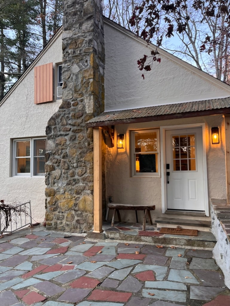 Arroccato sopra un ruscello nel bosco. Ammira le stagioni piegarsi e svolgersi in 15 ettari di foresta privata, cascate e laghetto. Addormentati al suono del torrente sottostante. Svegliati su una tettoia di travi, soleggiato e colazione su un portico schermato. Respite, creatività e gioco (escursione, slittino, a 5 minuti da Mohawk Mtn Skiing). Costruito a mano, ispirato alle case da tè giapponesi, con costruzione di linguette e scanalature, zanzariere shoji e tappetini tatami. Video: "Cornwall Hollow Teahouse" su YT o IG