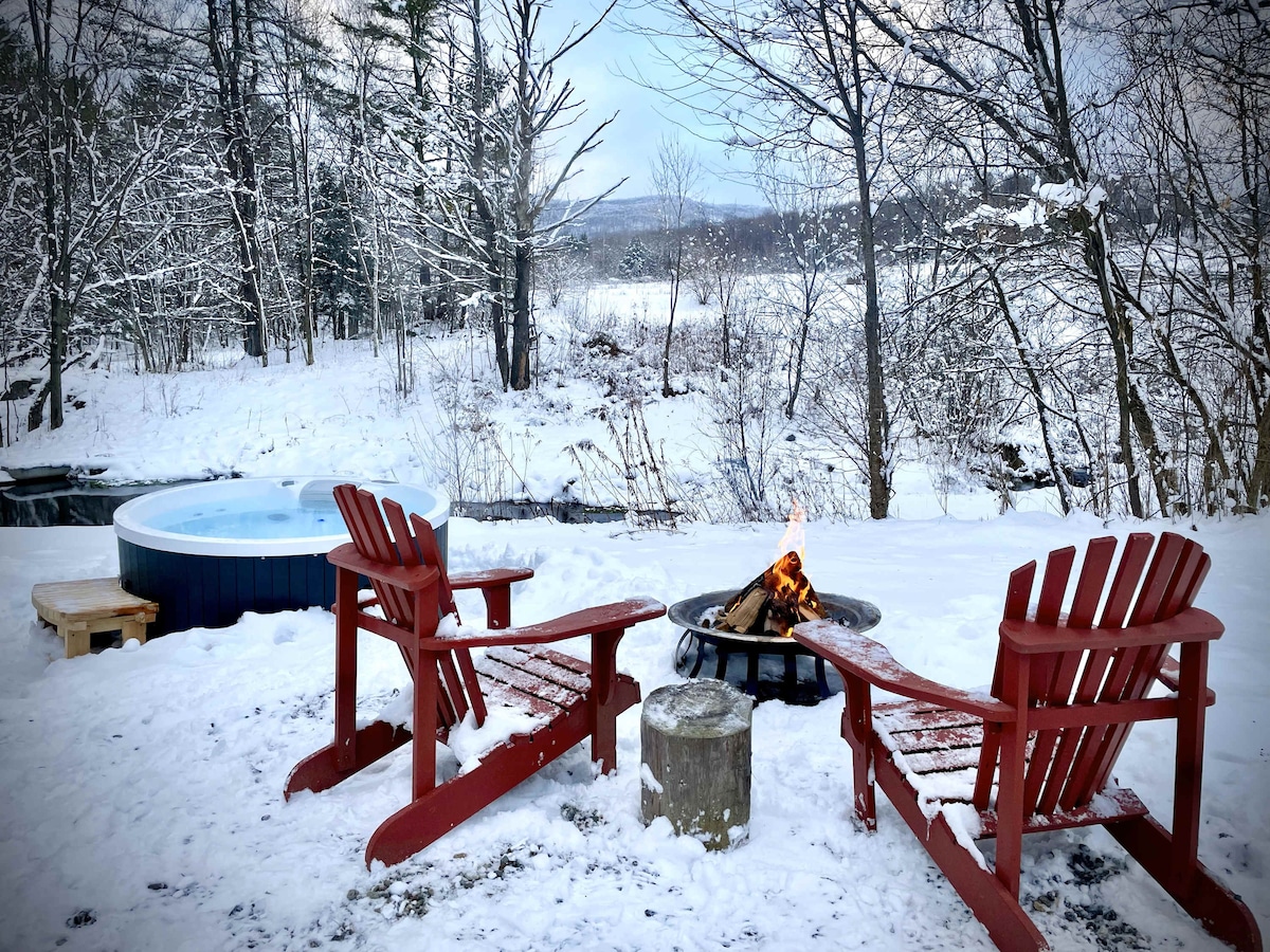 Un chalet chaleureux et lumineux en pleine forêt, idéal pour relaxer entre amis ou en famille. Profitez du spa privé, du sauna, du design épuré et de l’intimité du terrain boisé. À environ 20 minutes d’Owl’s Head, 35 minutes de Jay Peak et à proximité des sentiers de randonnée et du lac Memphrémagog.