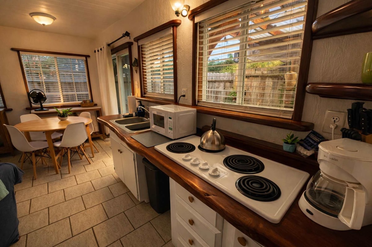 Siamo lieti di essere stati selezionati tra le dieci migliori destinazioni AirBnb da Trip 101. Speriamo che ti godrai la tua vacanza sulla spiaggia e tra le sequoie presso il nostro "A Street Cottage", un cottage con 2 camere da letto + studio e 1 bagno, a pochi minuti dalla costa mozzafiato della California settentrionale. Un camino a legna, molti cuscini decorativi e coperte in pile creano un rifugio accogliente. Teniamo anche un ventilatore e un condizionatore personale a portata di mano per le giornate estive, che insieme alla brezza dell'oceano mantengono le cose confortevoli