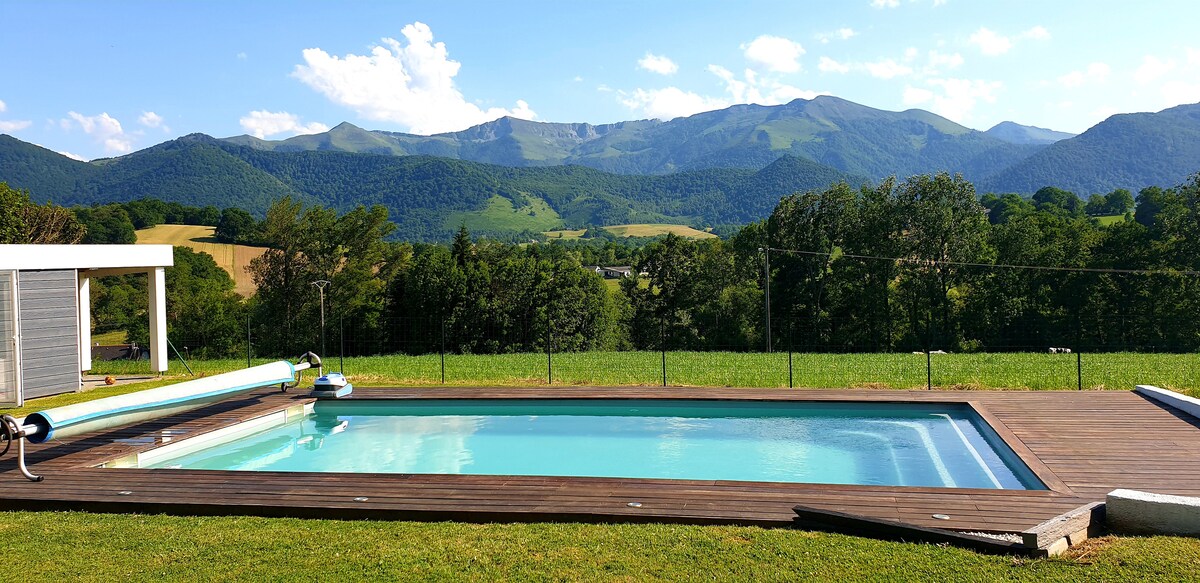 Casa spaziosa con bagno nordico e vista panoramica sui Pirenei - 12 posti letto Tranquillo e accogliente, perfetto per famiglie e amici. Due suite padronali (vasca da bagno indipendente, doccia moderna), un bagno adatto ai bambini e un accogliente dormitorio con letti a castello. Una camera familiare con letto matrimoniale e letto singolo. Cucina completamente attrezzata, grande tavolo da pranzo, bagno nordico sotto un pergolato. Giardino di 3.000 m² con vista mozzafiato sui Pirenei da ogni stanza, anche dal letto.