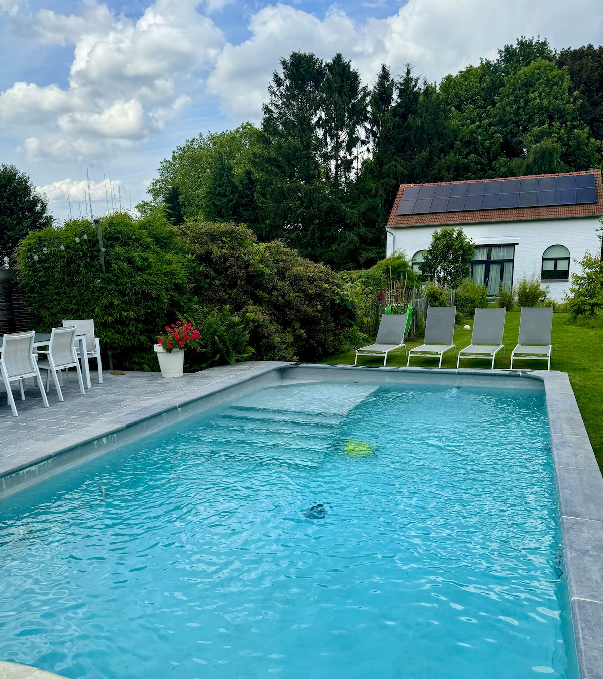 Bellissimo monolocale luminoso e tranquillo in una casa di famiglia appena fuori Bxl ma vicino ai trasporti pubblici (15' a piedi). Resto's, supermercato, parrucchiere, farmacia ,... nelle vicinanze (<1km) Posto auto privato. Possibilità di usufruire di uno spazio in giardino con un tavolo e 2 sedie. la nostra signora delle pulizie passa ogni venerdì. Se volete può pulire il monolocale e cambiare le lenzuola e il La piscina è in affitto (con supplemento) in base alla disponibilità.