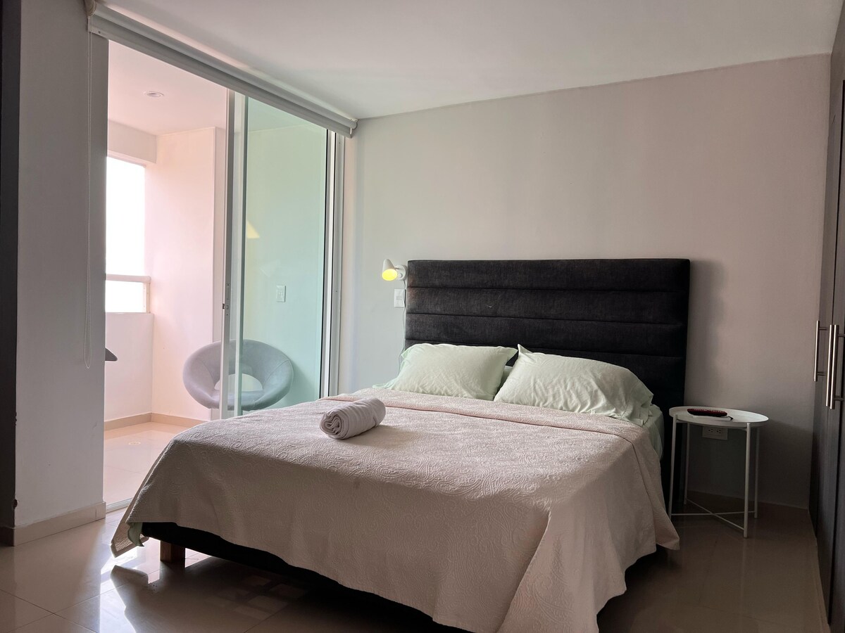 Goditi una vacanza all'insegna dello stile in questo appartamento al 12° piano in centro. Dispone di ascensore, sicurezza 24 ore su 24 ed è completamente attrezzata. Situato a Bucaramanga, la capitale delle calzature, questo bellissimo loft si trova nel quartiere di San Francisco, a pochi passi dal miglior quartiere calzaturiero della città e vicino a centri commerciali, ristoranti, supermercati, farmacie, trasporti pubblici, bancomat e una chiesa.