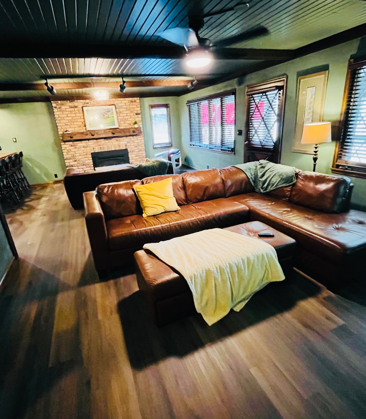 Sleeps 14 in house ONLY (Nov-April) sleeps 18 (May-oct) barn too This gorgeous home is located on a beautiful golf course. It had riverfront access. Including: kayaks, 2 large rec rooms in bonus building & walkout basement, fire pit, gorgeous deck, 3-seasons porches, 🏀 hoop, large TVS, & pickleball net. This is 3 doors down from an enormous bar & grill with patio overlooking water. Peaceful home w bonus bunk room above barn. Perfect for large groups and family gatherings & retreats.