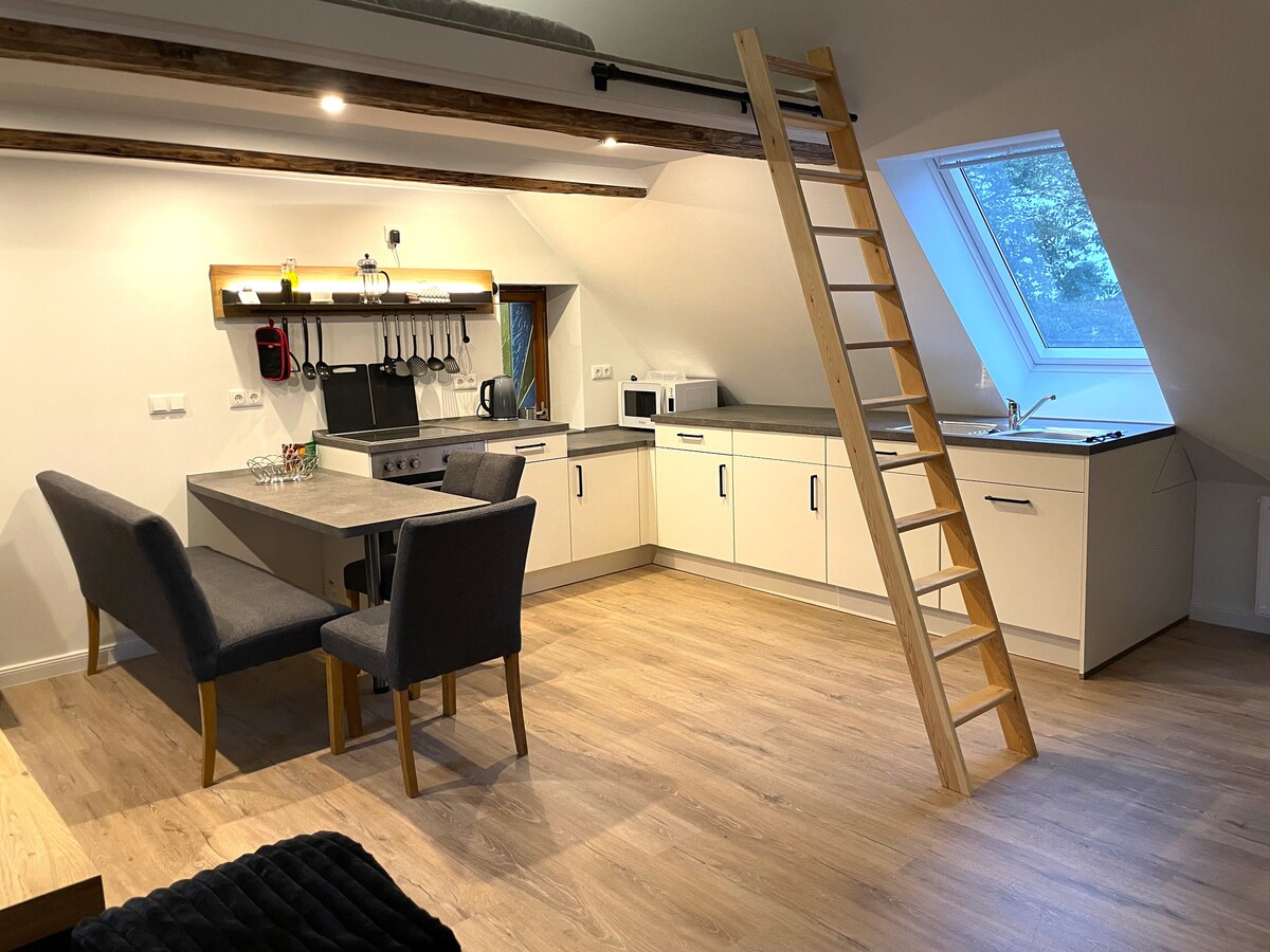 Benvenuti nel vecchio mulino ad acqua di Südhorsten. Il luogo si trova tra Bückeburg e Stadthagen, nel cuore della regione di Schaumburg. Questo appartamento di 63 mq è stato completamente ristrutturato nel 2024. Può ospitare 2 persone, ma ha anche un divano letto in modo che anche max. 4 persone possono soggiornare qui. L'appartamento è stato arredato con cura e combina un ambiente di vita storico e moderno. Steinhuder Meer 32 Km, Castello di Bückeburg 8 Km, Fiera di Hannover circa 60 minuti