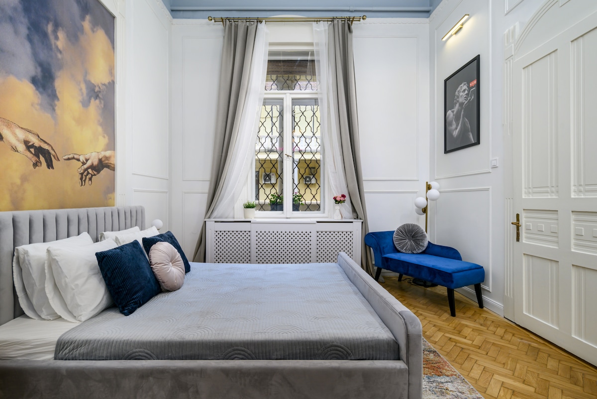 Cosa posso dire?! Appartamento di design● LUMINOSO e APPENA ristrutturato con SAUNA e ARIA CONDIZIONATA Posizione ●IMBATTIBILE: nel cuore della città❤️ SPA ●PRIVATA nell'edificio (a pagamento) Fermata dell'AUTOBUS● DIRETTO PER L'AEROPORTO (100E): 1 min✈ Parcheggio ●custodito: 3 minuti Deposito ●BAGAGLI: 4 minuti ●ASCENSORE ●SPECCHIO sul soffitto sopra il letto matrimoniale ●EDIFICIO SICURO ED ELEGANTE in un quartiere classico di Budapest Wifi ●ad alta velocità ●NELLE VICINANZE: i migliori caffè, bar e ristoranti - Qui puoi sentirti un vero abitante di Budapest :)